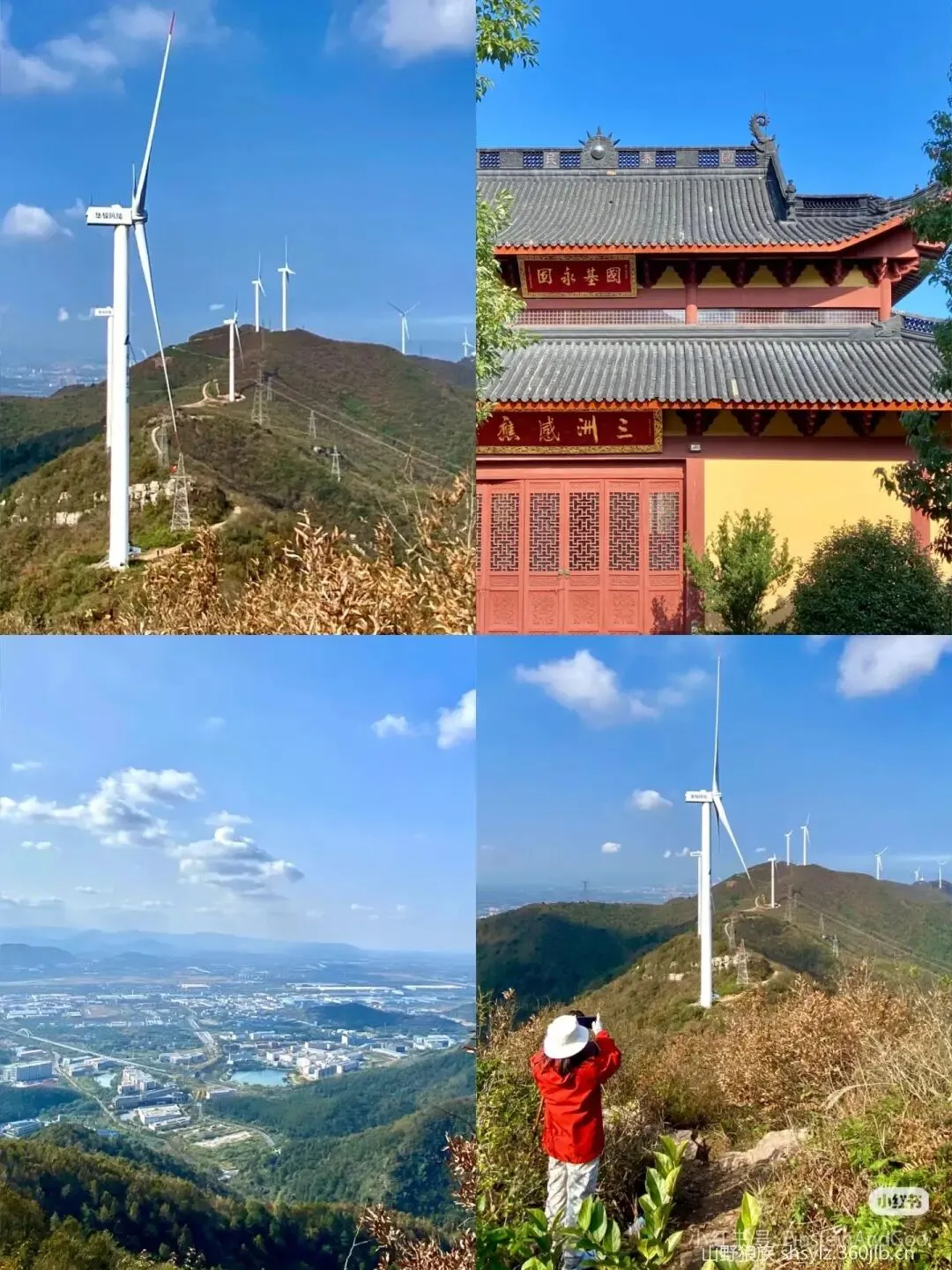 云顶风光:海拔521.5米,晴日登顶可俯瞰太湖全景、弁山风车群(风力发电站)及七十二溇港,视野开阔壮美。