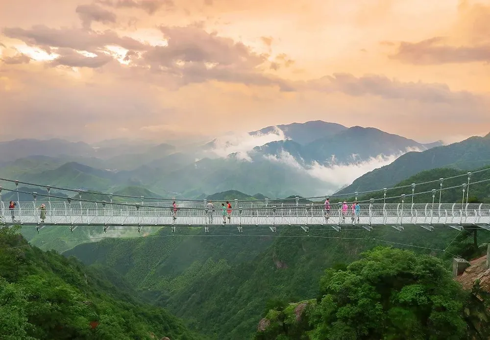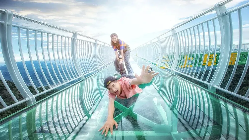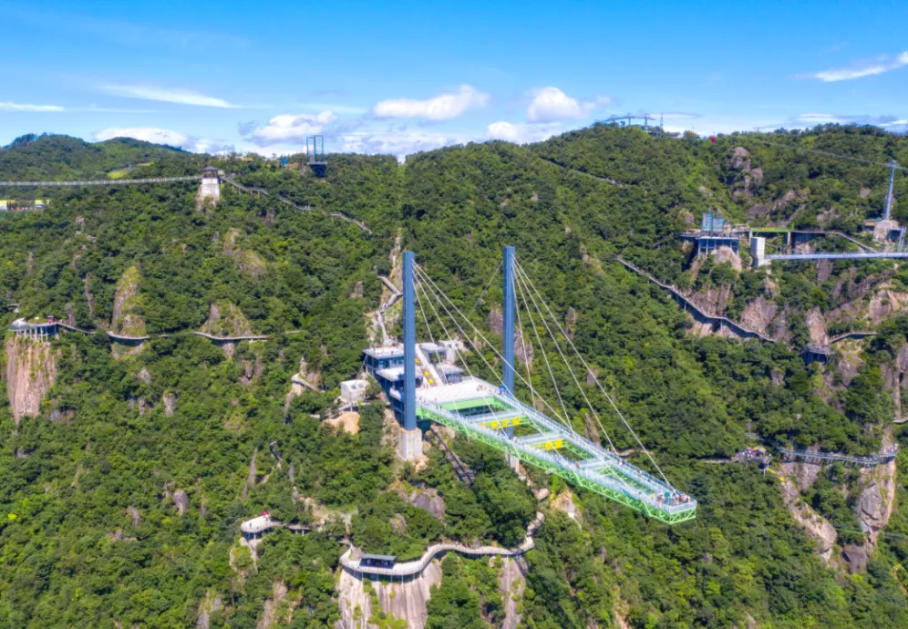 全长82米,全透明玻璃桥身行走其间如同凌空漫步、踏云破雾。