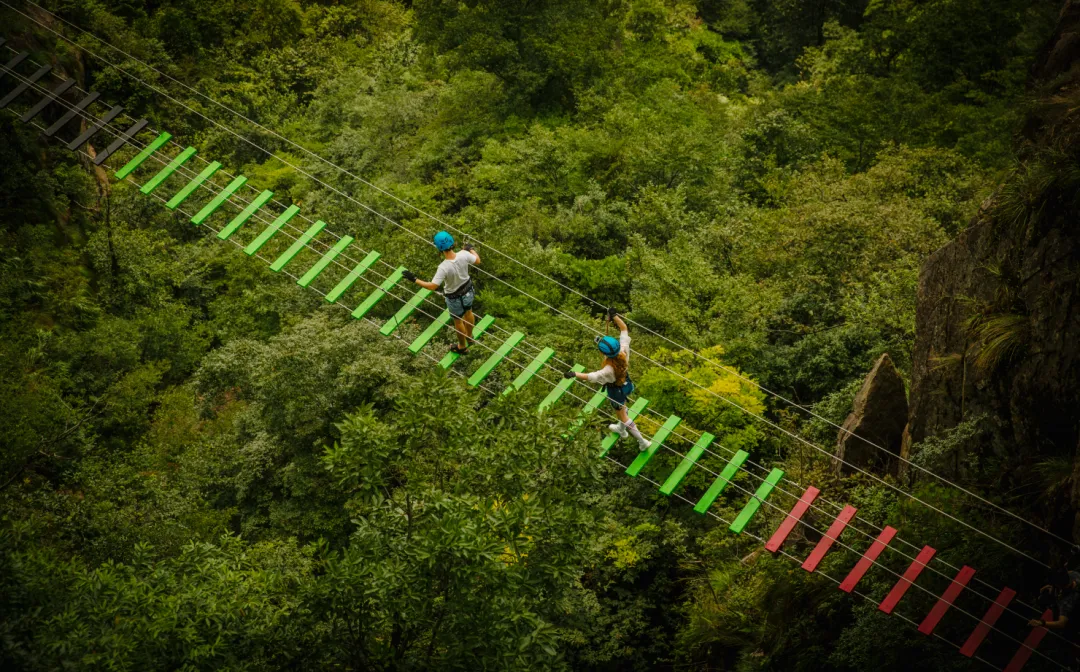 临崖而建、荡于1100米山巅的悬崖秋千,全新升级为悬崖秋千群!原双人悬崖秋千旁新增1个10米单人秋千、2个12米双人秋千,原单人悬崖秋千4米杆升级为6米,8座秋千一起带你们上天!