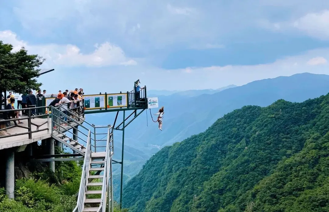 云中漫道旁的新项目——悬崖蹦极,是一种战胜自我、挑战极限的运动。纵身一跃,与独特的悬崖风景来一个“亲密接触”,绝对让人终身难忘。