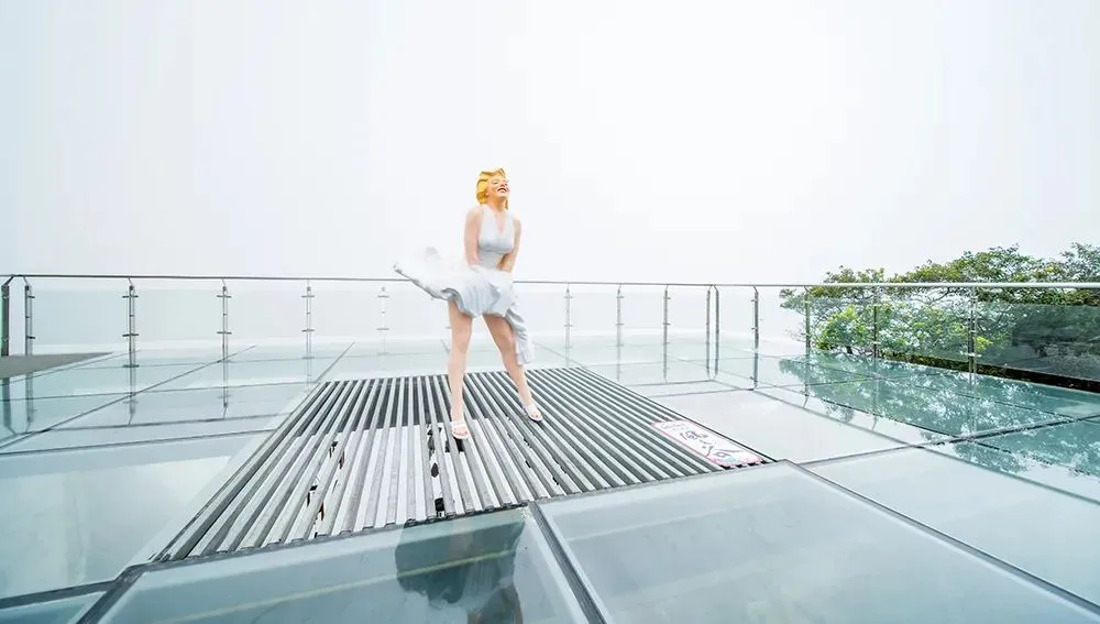 位于悬崖乐园南端最高点,穿越云海到达玻璃观光平台,如神仙般小憩于此,拥抱云海与山。美丽的“梦露女士”雕像在此微笑迎客,别忘了穿上漂亮的裙子,站在“梦露”身边,摆出撩人的经典姿势,定能成为最亮丽的风景线。