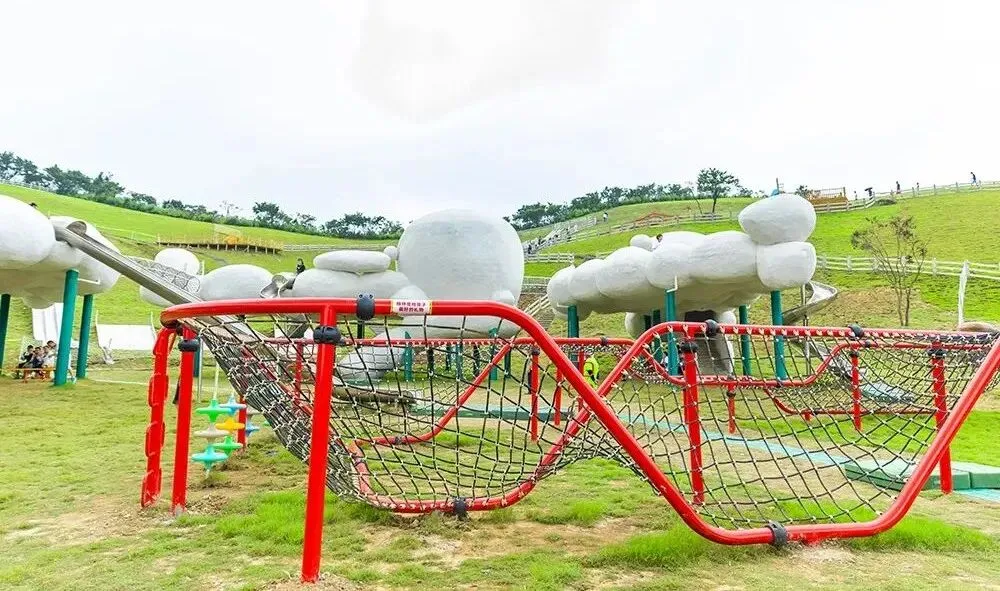 在云中部落奔跑,穿梭于攀爬网、滑滑梯等各项关卡中,就像穿越在云海之间,轻柔而梦幻,随意挥洒的肢体,让孩子伸手触摸蓝天,触摸每一片云彩。