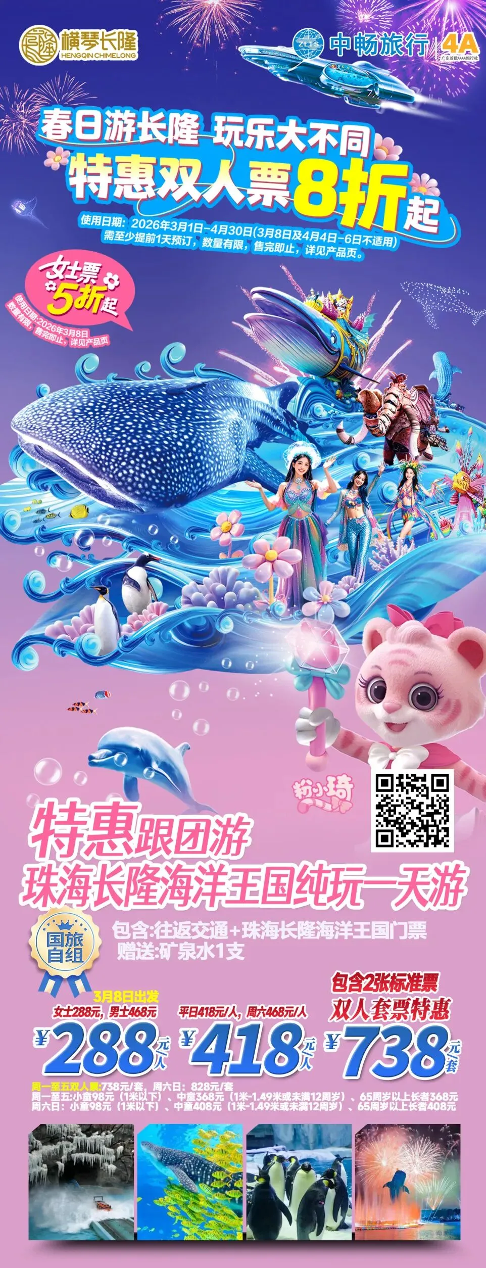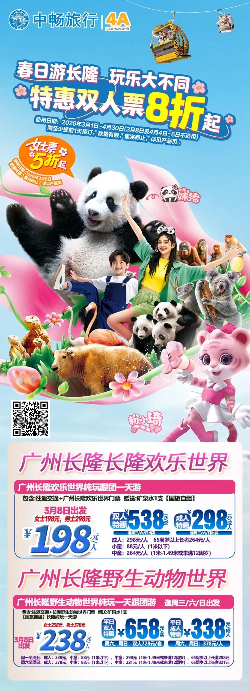 【女神节游长隆】女士票 5 折起 !广州 • 野生动物世界 & 欢乐世界|珠海 • 海洋王国 ~