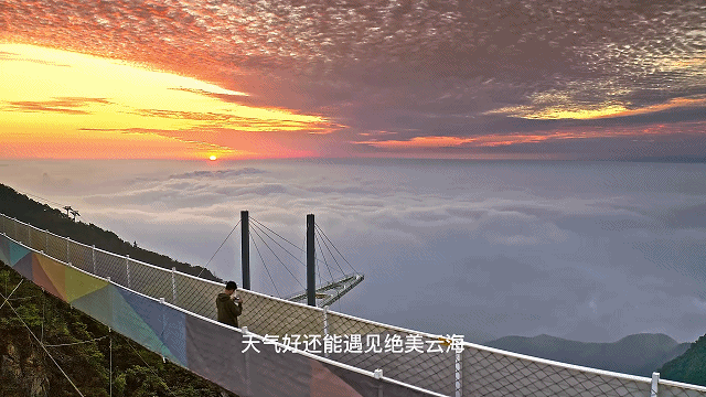 大约2小时,到达云上草原购票窗口,稍后我们排队乘坐索道前往【云上草原】,之后体验凌空飞步、玻璃栈道、悬空廊桥、悬崖秋千等……(云上草原有餐厅,可以午餐或自带哦,节约时间玩耍~)