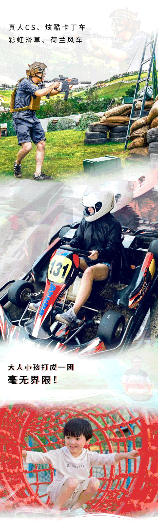 更有以天空为主题的无动力滑草乐园,有彩虹滑草、云中部落、无动力探险等。