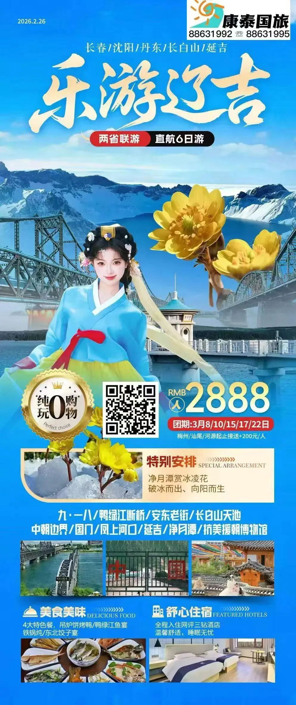 【乐游辽吉】长春/沈阳/丹东/长白山/延吉两省联游六天💰2888