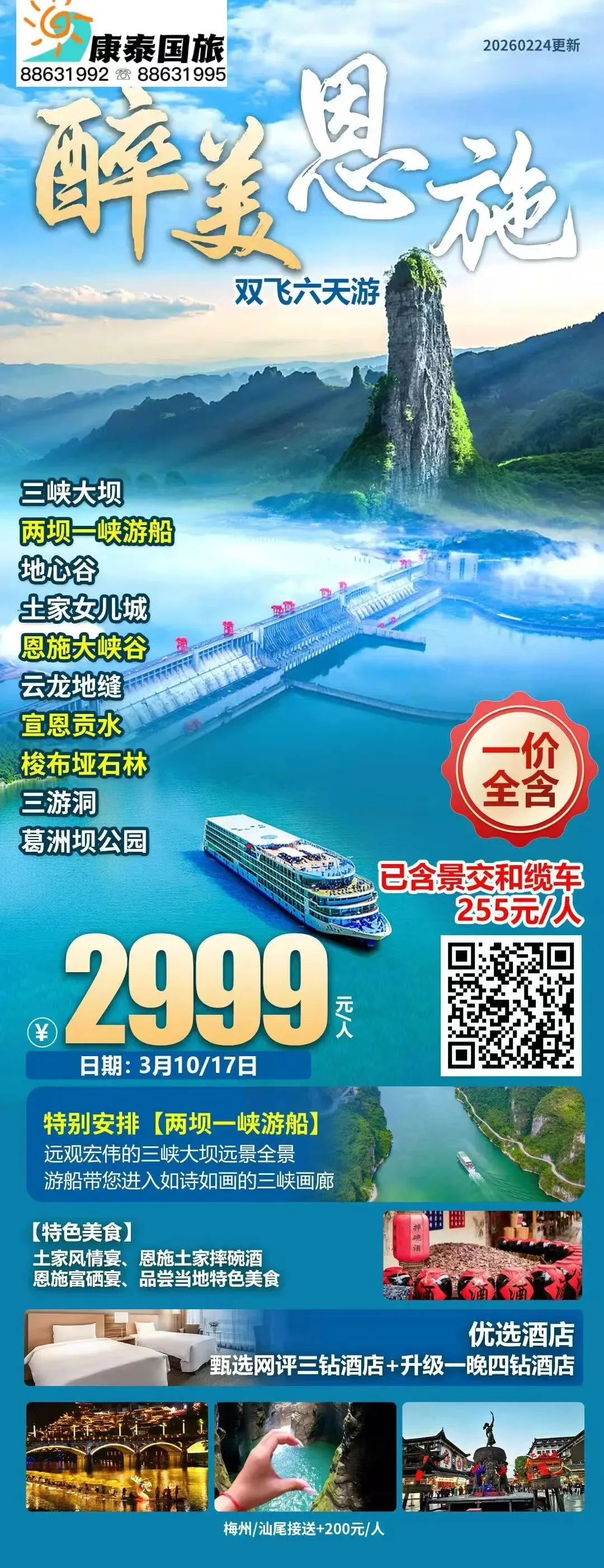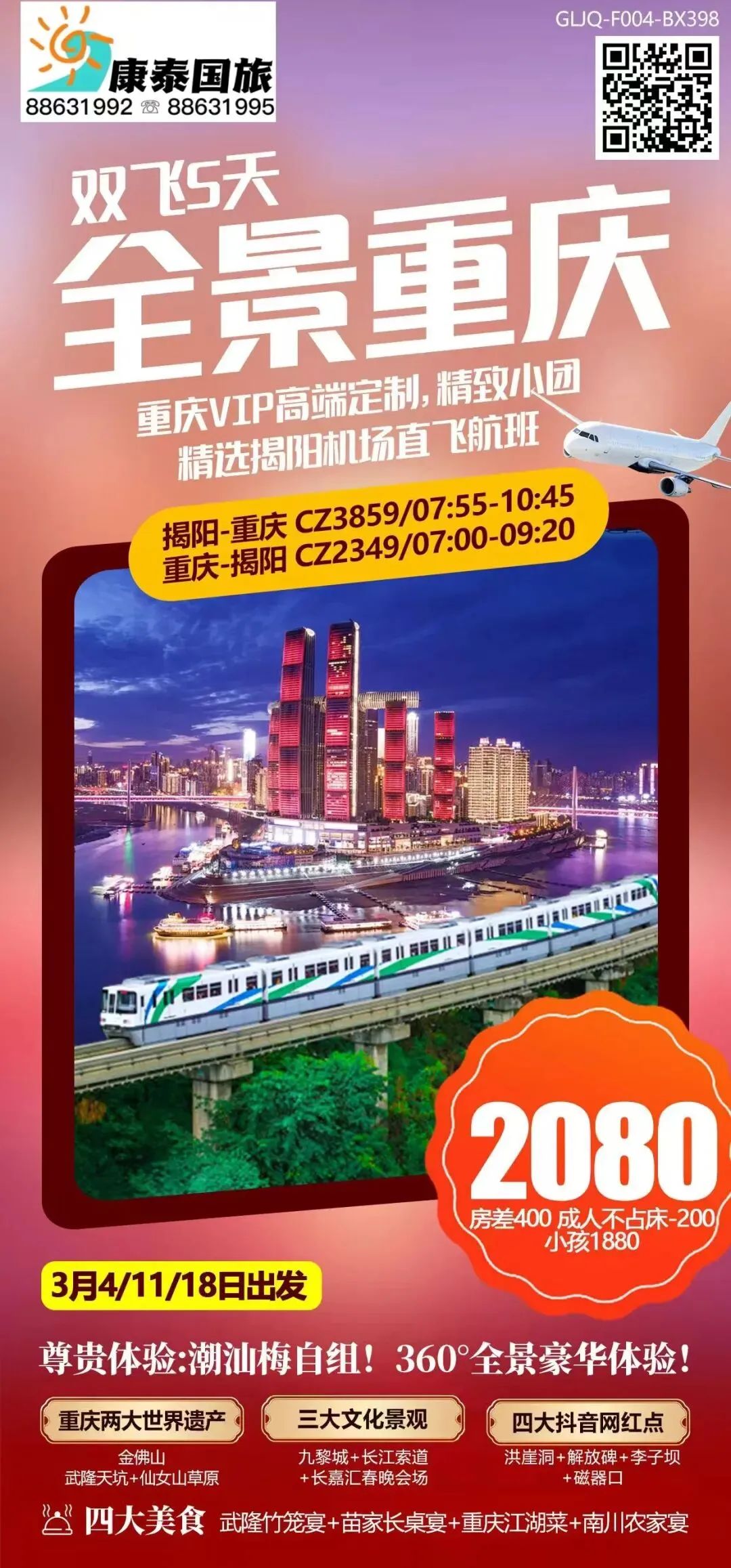 ✈️ 全景重庆双飞五天 3月11 日铁发
