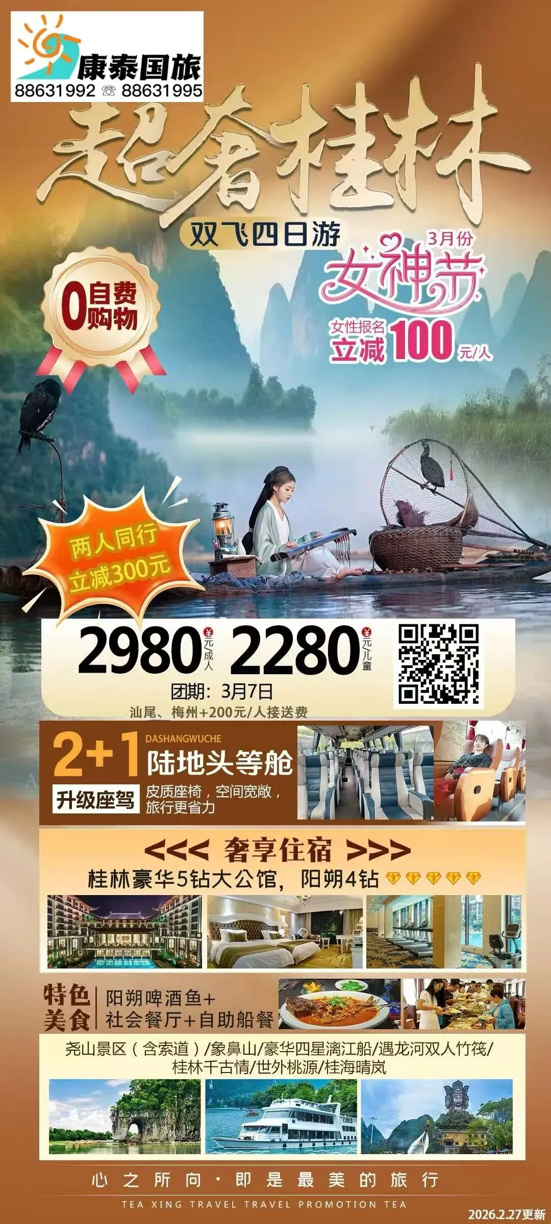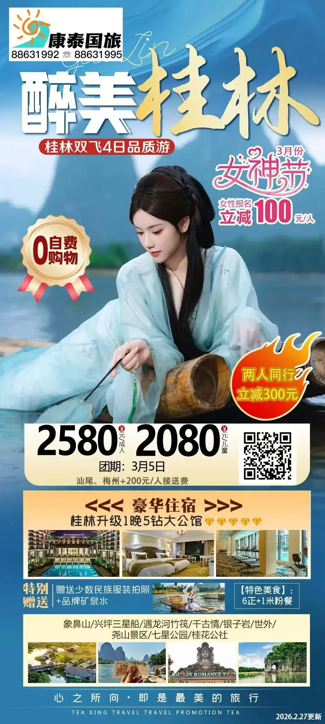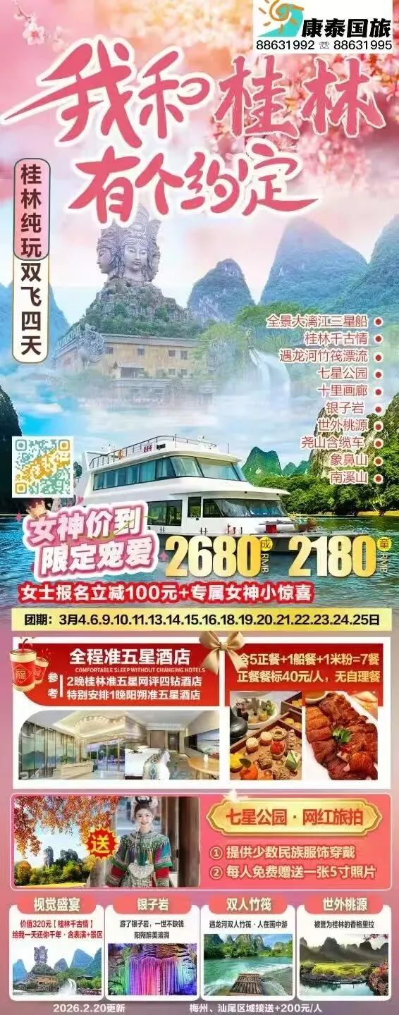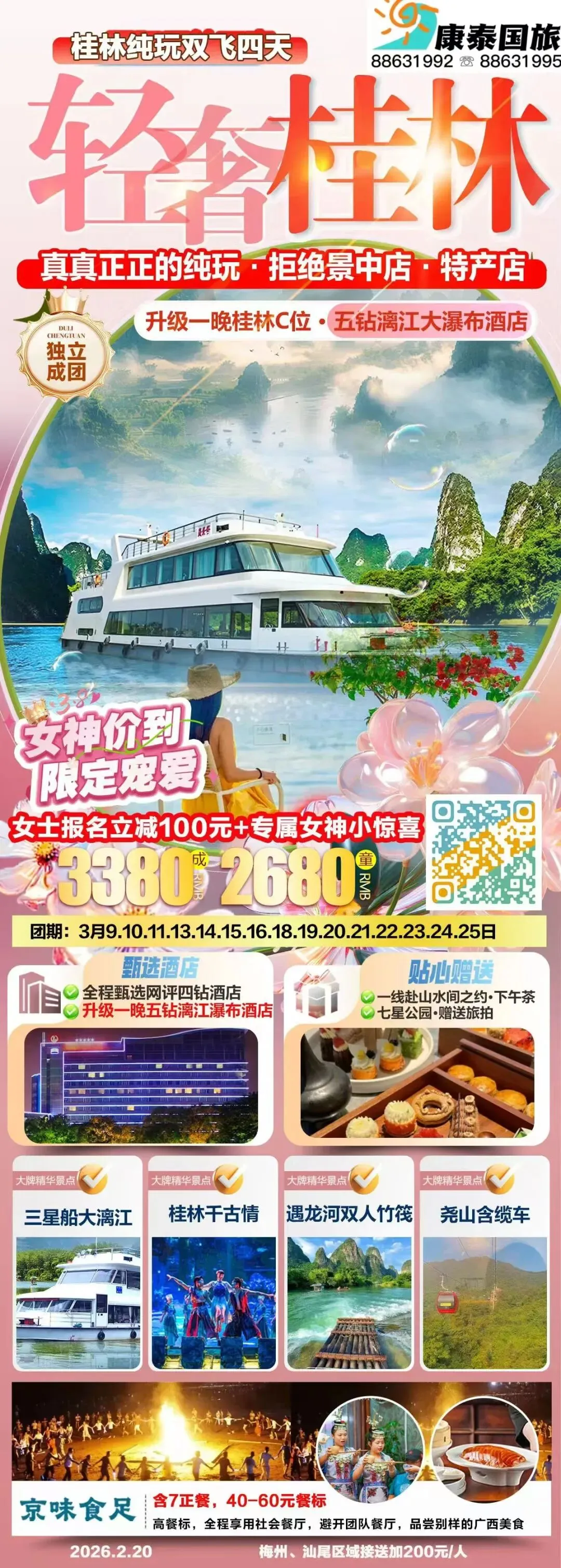 【我和桂林有个约会】纯玩双飞四天💰2680