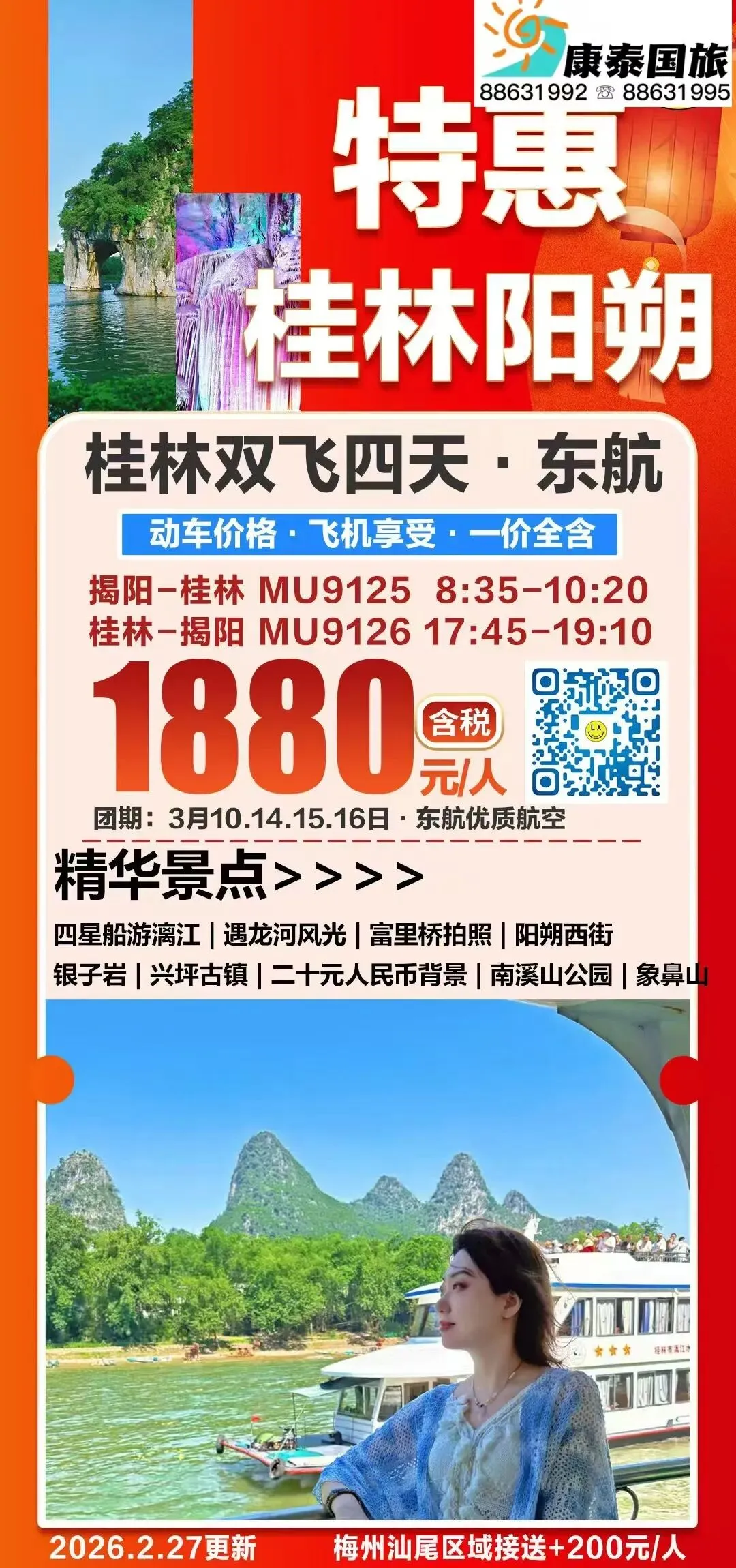 ✈️【特惠桂林阳朔】双飞4天💰1880