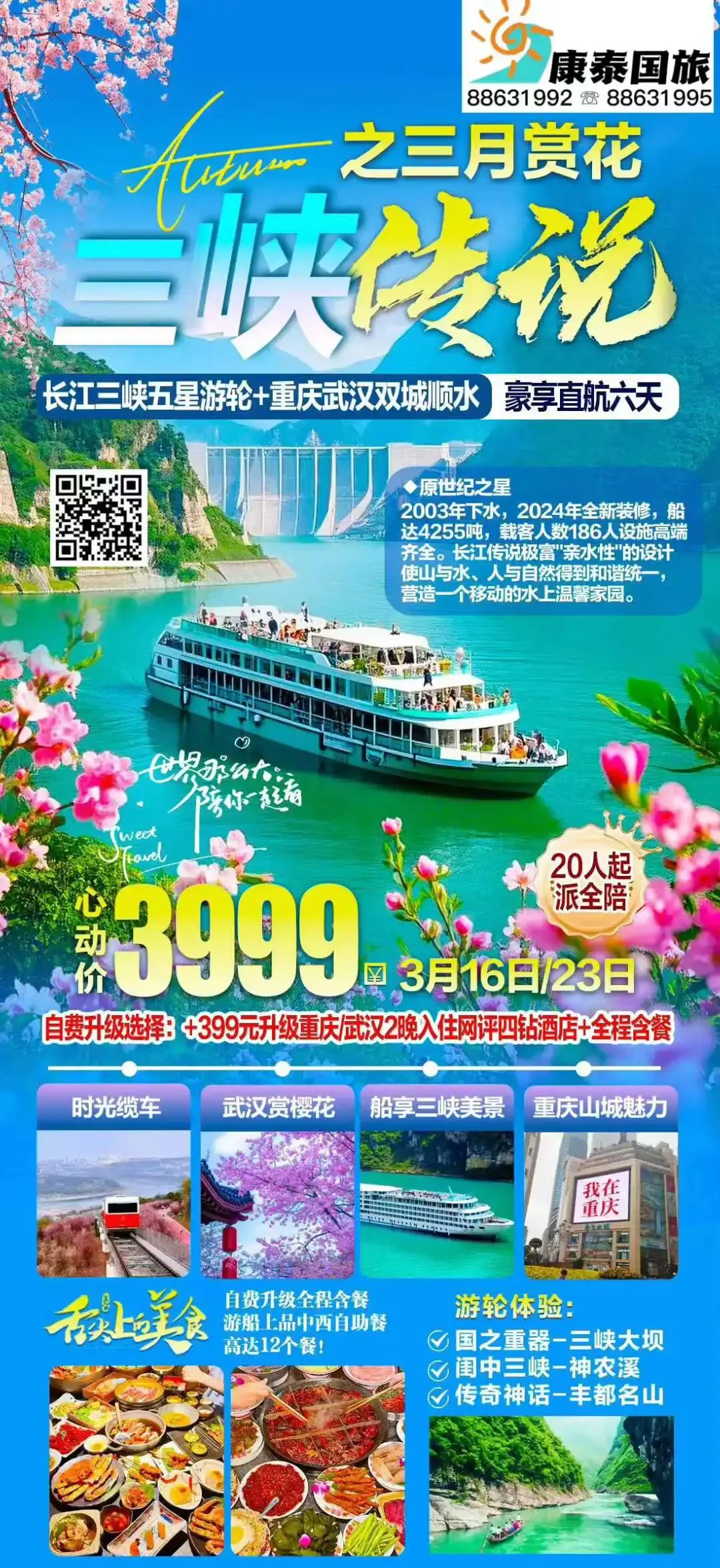 🉐报名缴交399元升级重庆/武汉2晚入住网评四钻酒店+全程含餐