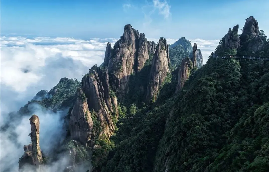 山间清凉舒适,郁郁葱葱,雨量充沛,云雾缭绕。抓住好时节,去饱览三清山的奇境妙景,感受在云雾缥缈间游走的悠然自得!