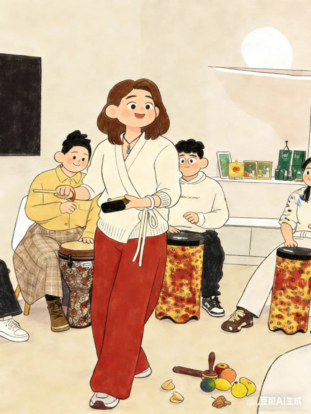 鼓圈的圆形不只是一个空间设置——它是一种宣言:这里没有舞台,没有观众,每个人都平等地坐着,每个人的声音都重要。 没有人会回头看你敲得对不对,没有人在心里打分。