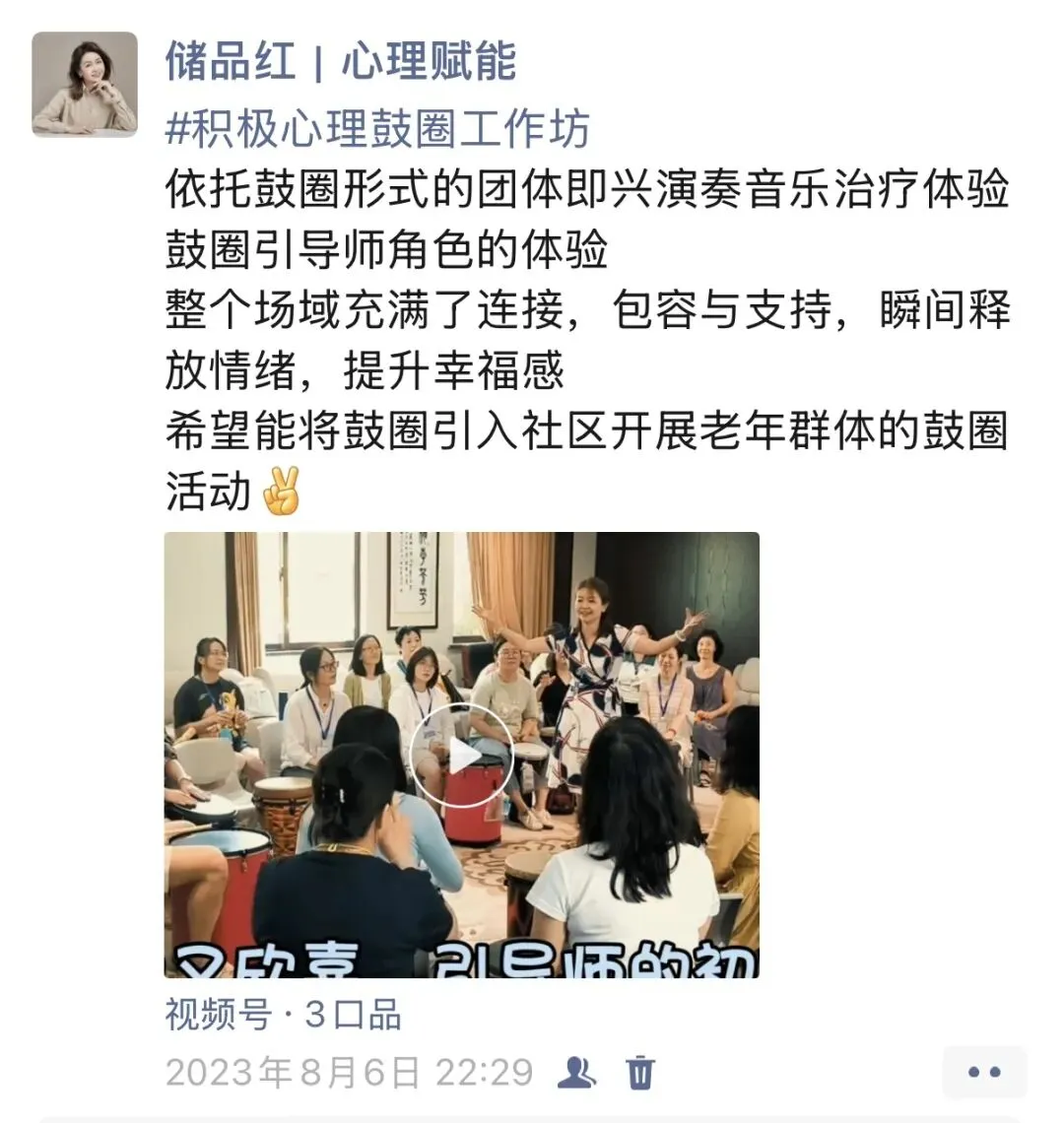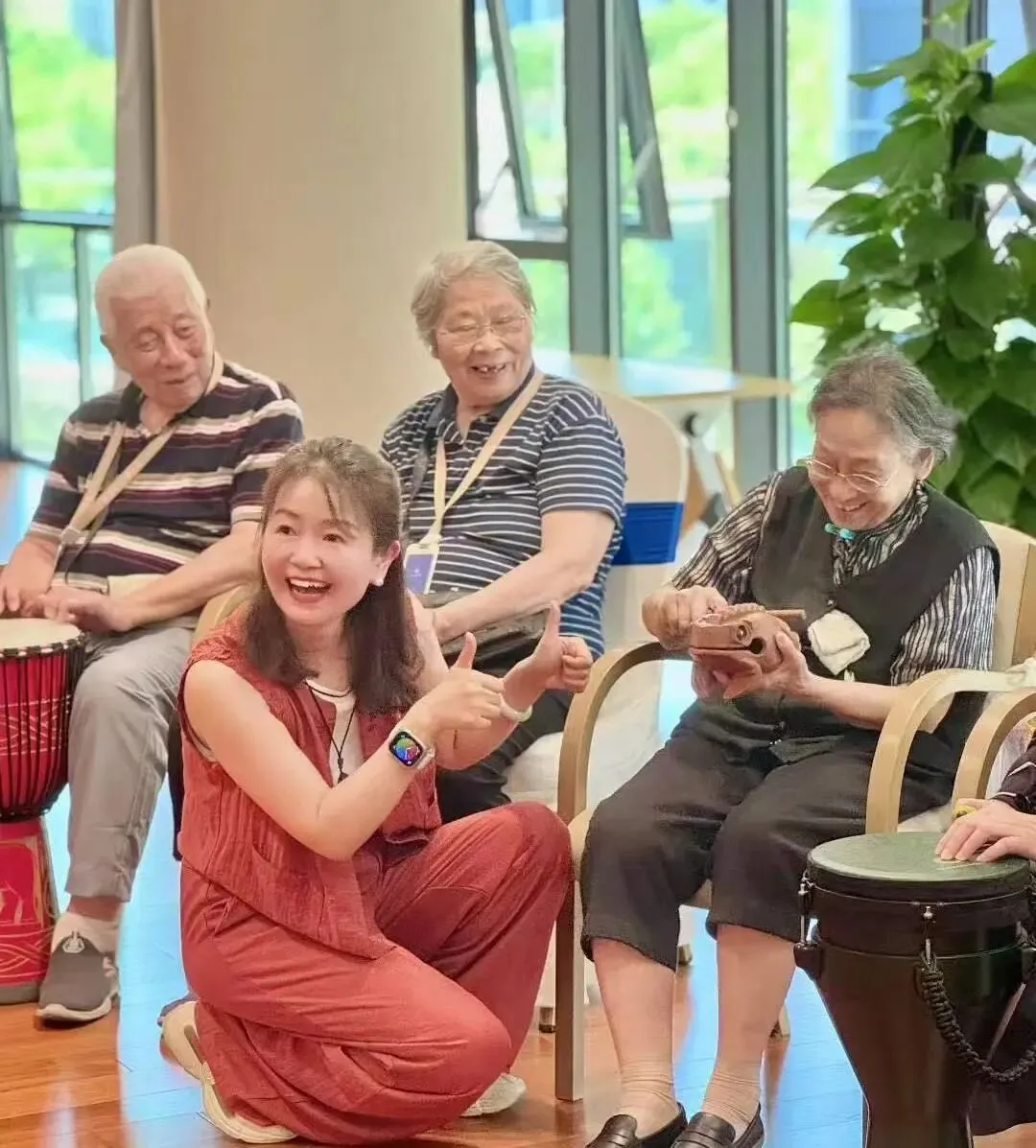 从那以后,鼓圈走进了养老院、未成年人保护站、医疗系统、学校、女性群体……到今天,已经做了22场。每一场,我都会看到第一次拿起鼓槌的人,从拘谨到松动,从评判自己到全然投入。那个瞬间,会让我一次次地确认——这件事,值得。