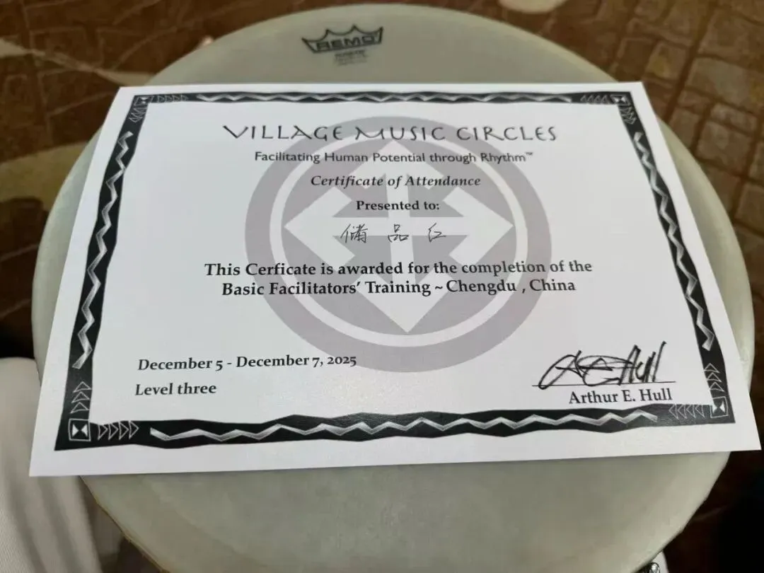 后来,我跟随鼓圈创始人Arthur Hull,从Level 1一路学到Level 3。一边学,一边感受,一边践行。2025年5月,我买了第一批Remo鼓;精心挑选各类小乐器,打磨音色配比;寻访隔音、安全、舒适的场地……一切准备好,2025年6月,组织了第一场鼓圈。