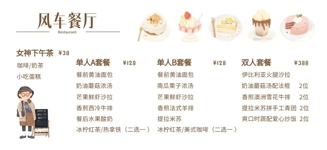 赠送风车餐厅女神下午茶一份