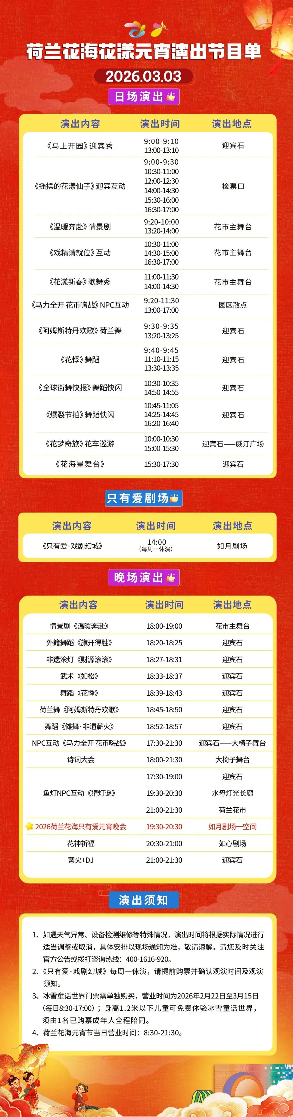*所有演艺活动以当天广播通知为准