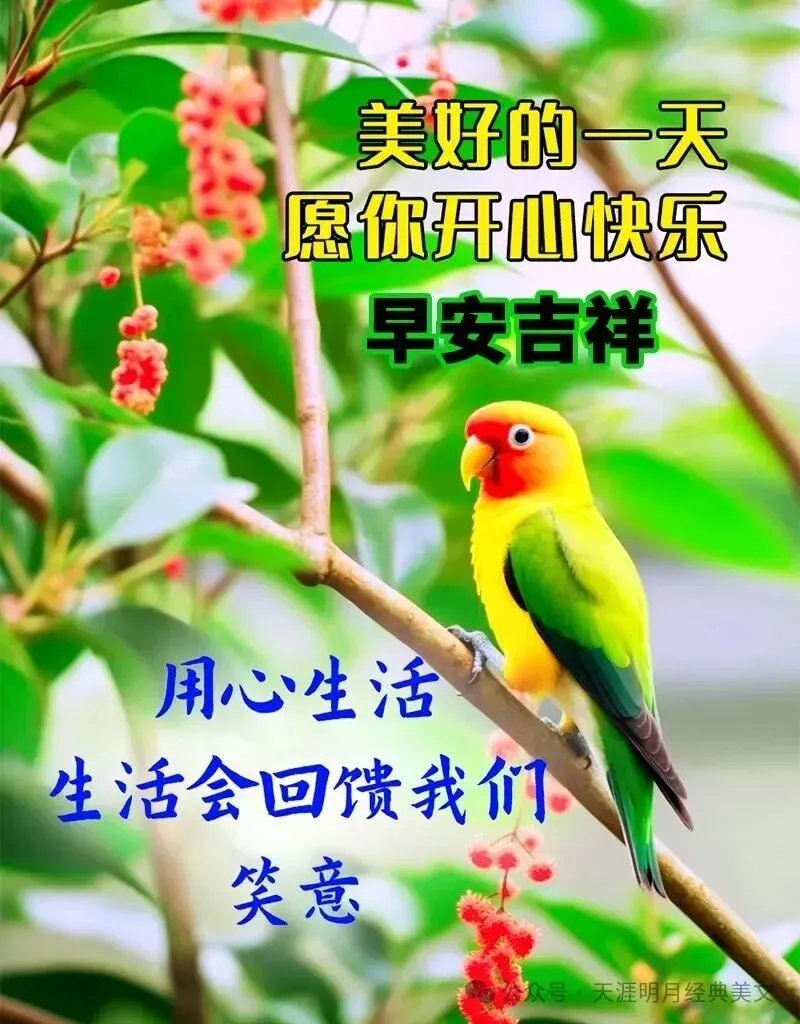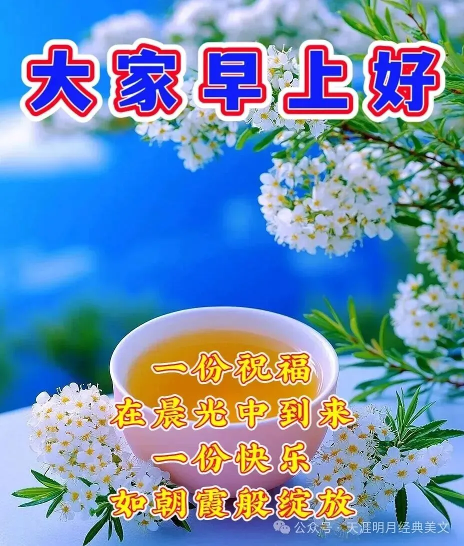 16、🌞🌻晨光照耀,幸福来到,早睡早起,精神最好,🌅一杯牛奶,一块面包,带着吉祥,带着微笑,🌷紧紧拥抱,开心就好,好运相伴,祝福相随,🌺每时每刻,每分每秒。腊月清欢,暖意常伴,亲爱的朋友,🍒早安!美好的一天属于你!🌻☀️🌈