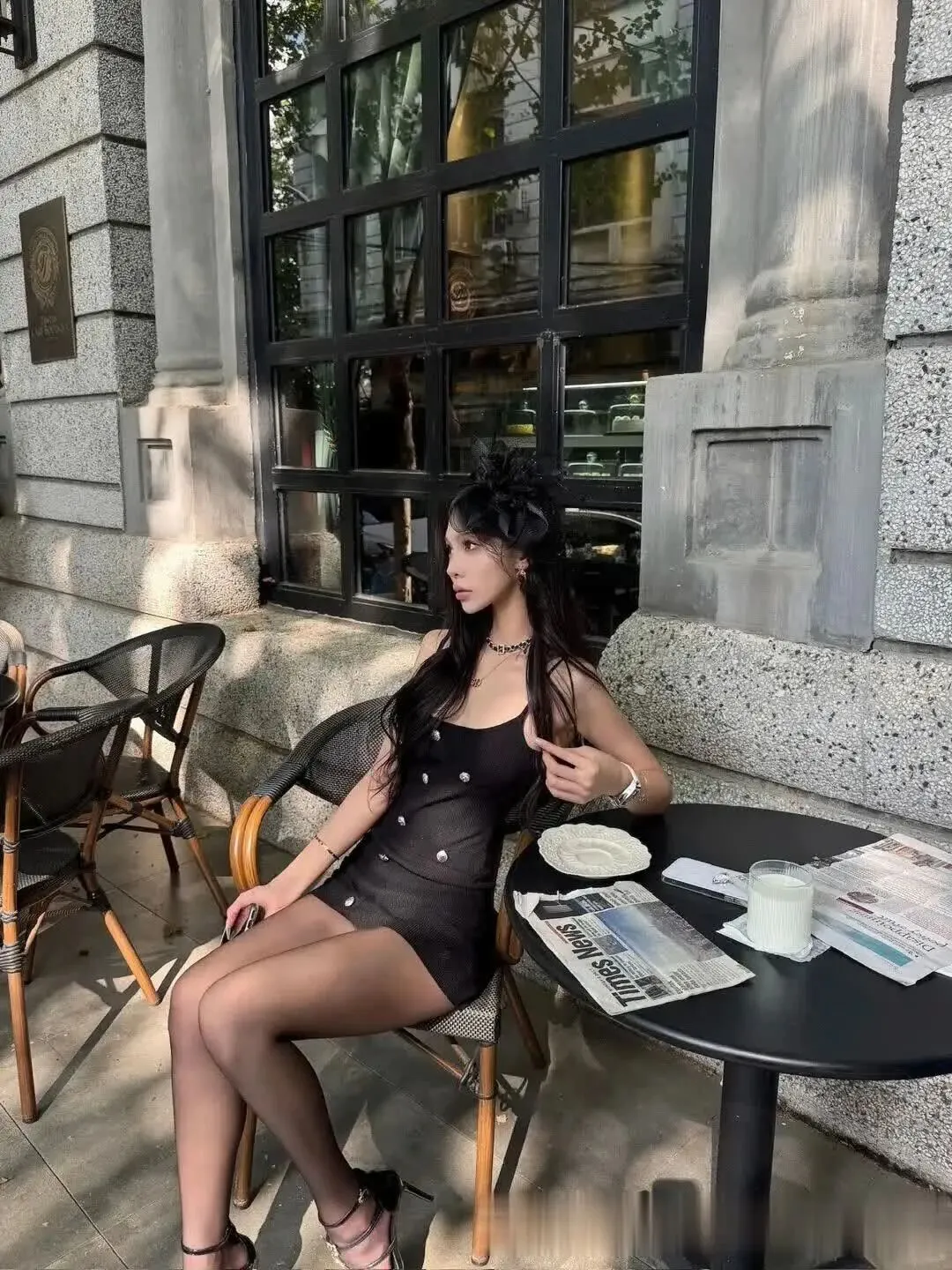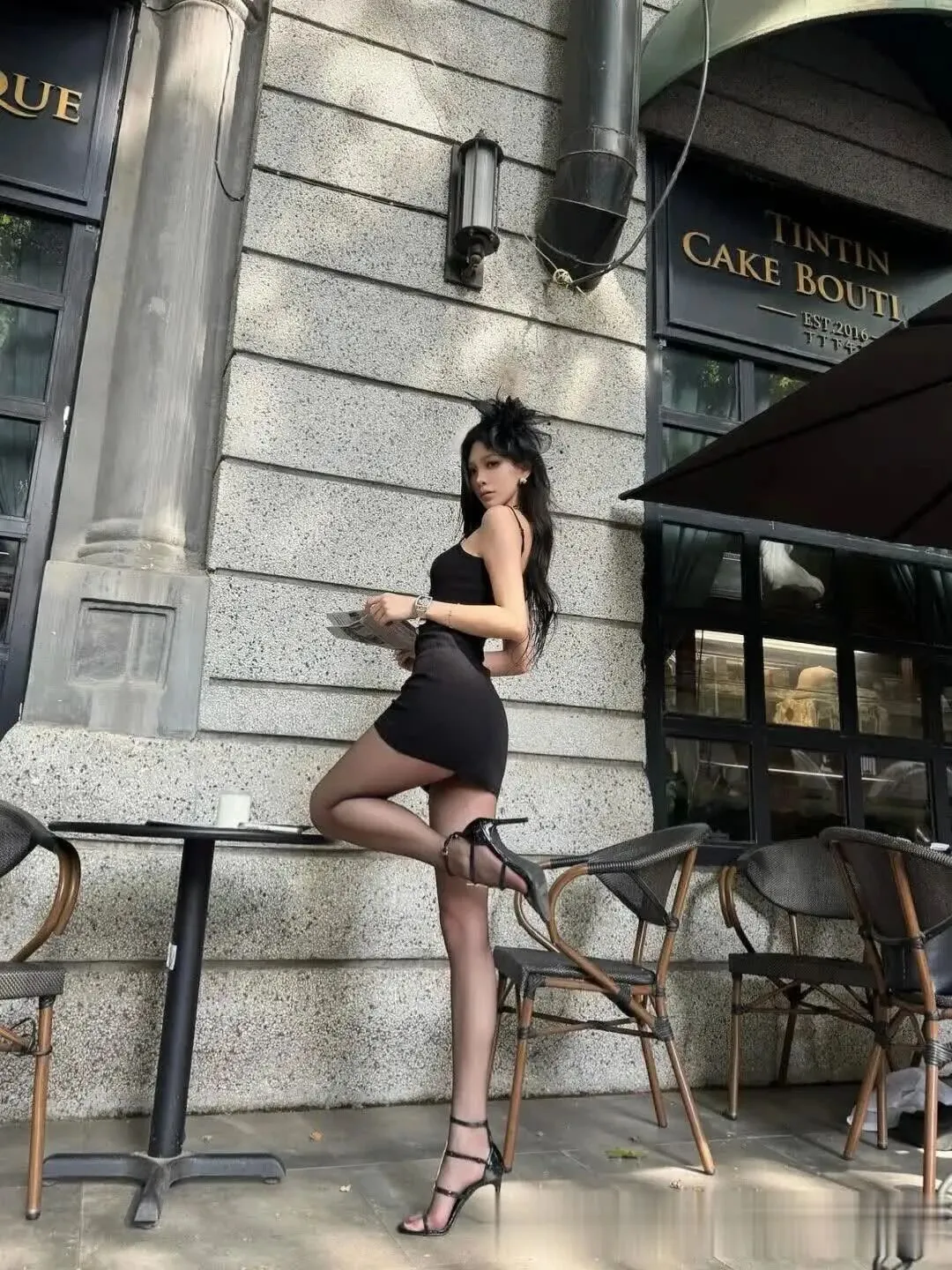 当前位置:首页>美女资讯>美女模特、TINTIN门前当奶油系女友!黑丝配白扣裙杀疯了~转头石柱边夹文件变香奈儿大佬,这姐段位太高!