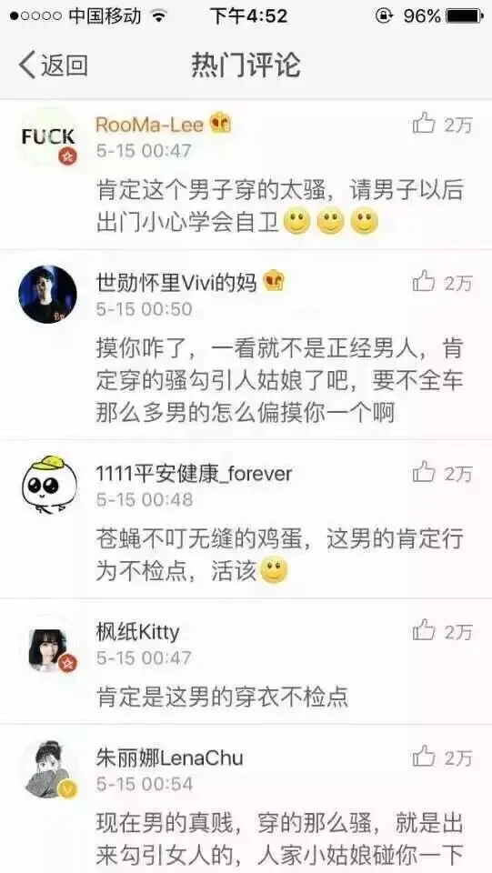 “这男的大白天坐什么公交,还穿得那么风骚,不骚扰你骚扰谁,活该!”