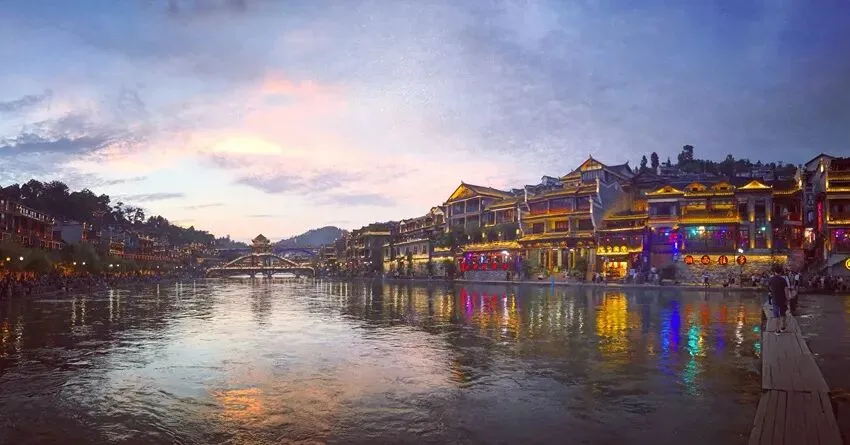 「張家界を昼過ぎに出て、夕方、鳳凰に到着。日が沈み、マジックアワーの時間帯に何とか間に合いました。まさに鳳凰のように輝く電飾や空のグラデーションがとても印象的でした。この日の夜は、ゲストハウスで中国人大学生と意気投合し、一緒に夜の鳳凰古城を散策したのですが、古城内には「日本人入店禁止」のお店も何軒かあります。ただ、「それもまた中国」という寛大な心でいきましょう。