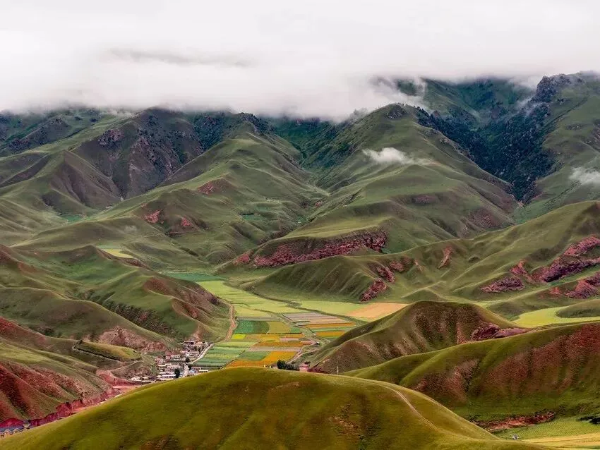 「青海省-祁連-卓尔山の日の出を見に早朝から登山、しかしながらあいにくの曇り空。。。昼まで頑張ると少し太陽が出てきてこの景色を撮ることができました。