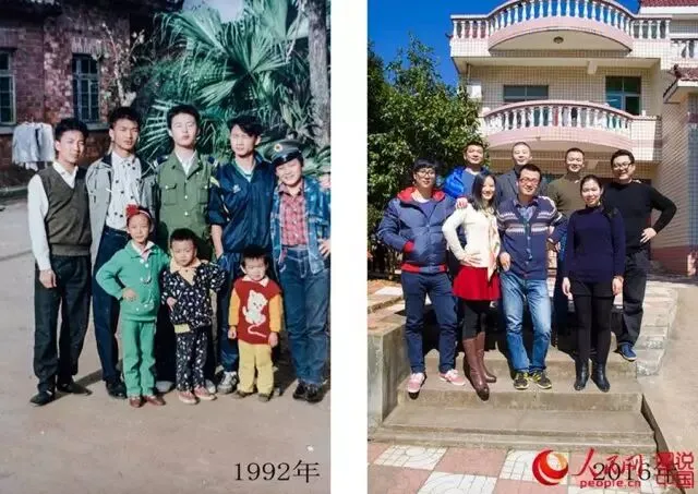 巫啸铁和表兄弟姐妹们时隔二十多年,在同一地点拍摄了穿越时空的两张照片。
