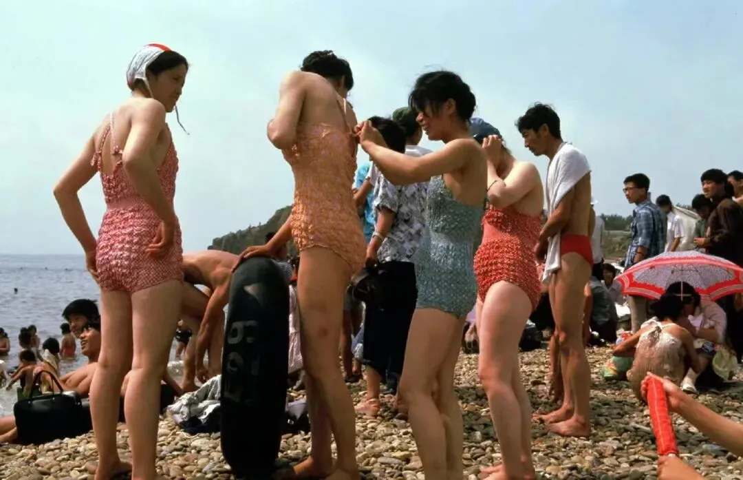 辽宁星海公园中穿泳衣的游泳者,摄于1982年