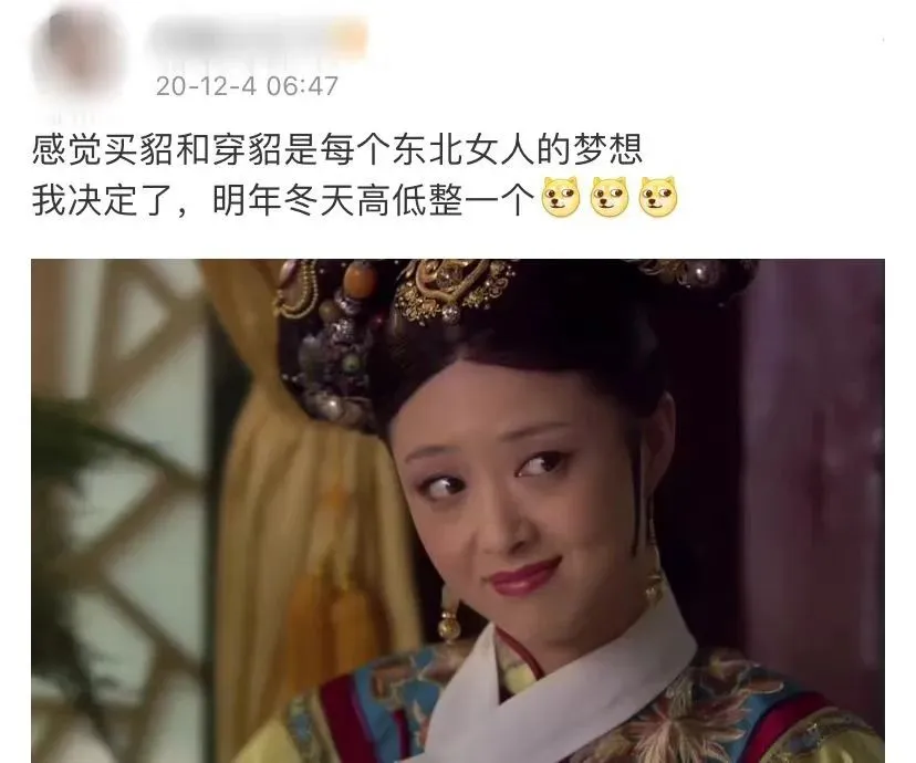 除了大花袄,东北的冬天也少不了“貂儿”的存在。