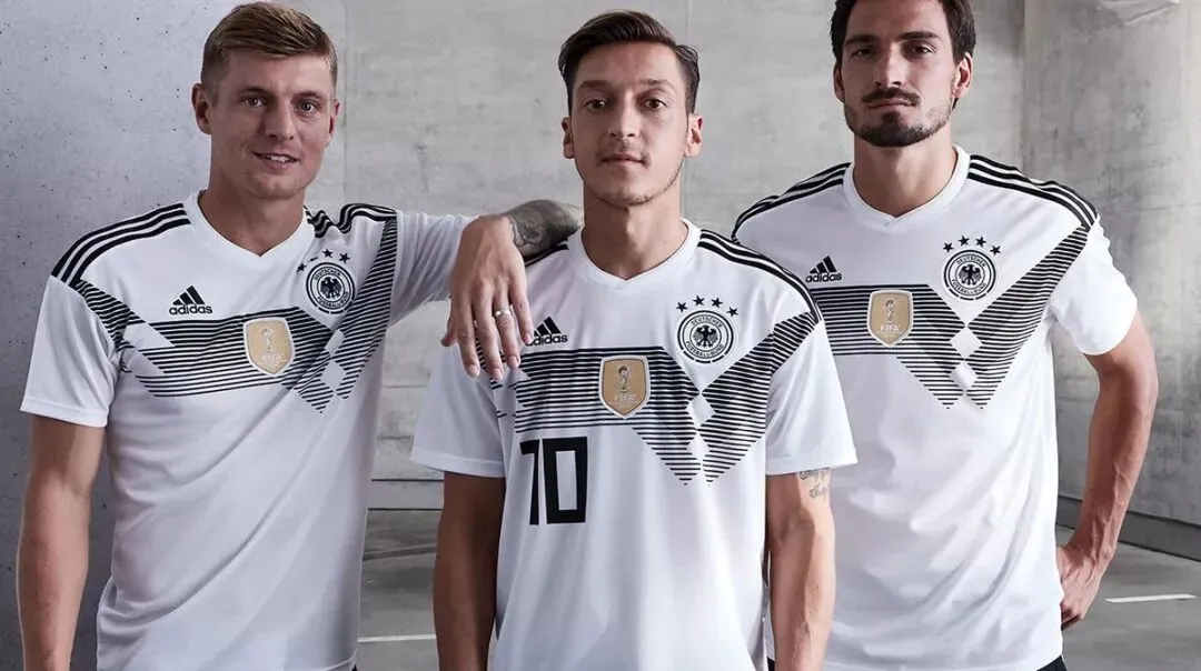 本届世界杯德国队的球衣,依然是传统黑白配色,整体搭配致敬1990年冠军经典款。