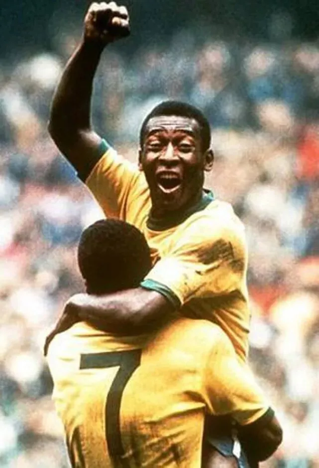 1970年世界杯决赛 巴西队贝利打入第一球举拳庆祝