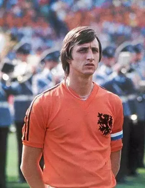 荷兰传奇足球巨星克鲁伊夫,注意,袖子上是两道杠