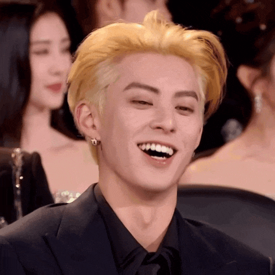 本来想把棣棣安排到惊艳组的,奈何整场晚会他从头皮到尾,充当社交悍匪,在台下reaction比谁都嗨,一颗金色的脑袋也是够显眼的!