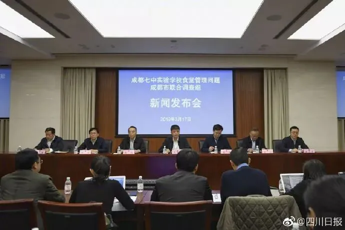 3月17日上午,成都七中实验学校食堂管理问题成都市联合调查组举行新闻发布会。