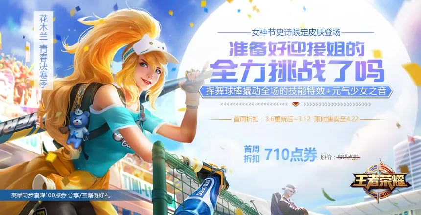 哼唧,究竟是哪位女神霸气侧漏了呢?木有错,就素我们的花木兰啦!青春决赛季正式上线,掀起峡谷棒球风云。这个女神节,你准备好了吗?