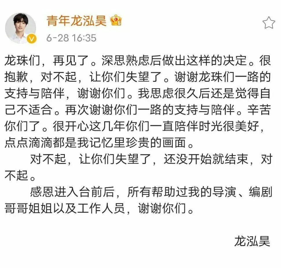 当然,不止有转行的,也有直接发声明退圈的↓