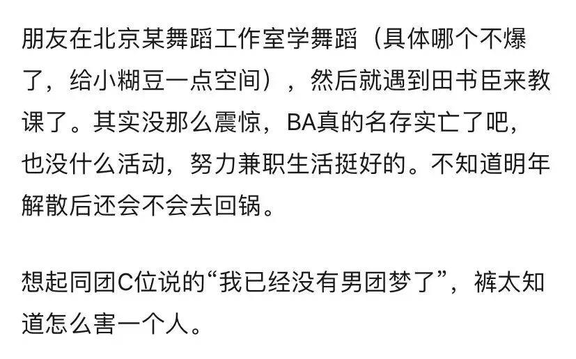 而同一个组合的田书臣,也难逃没有工作的命运,