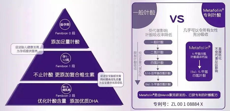 Femibion伊维安的这款叶酸,有METAFOLIN® 叶酸研发专利,含活性叶酸成分,人体吸收率相较于其他化学合成叶酸,高达99.9%,中国女性的体质也完全能够吸收。