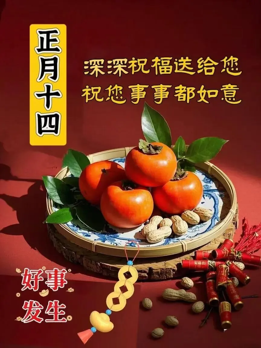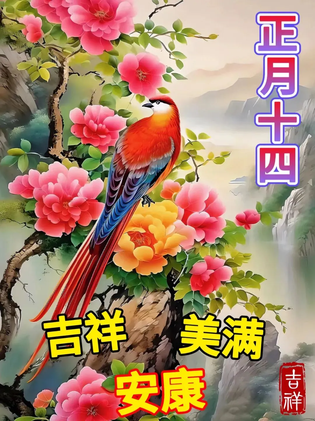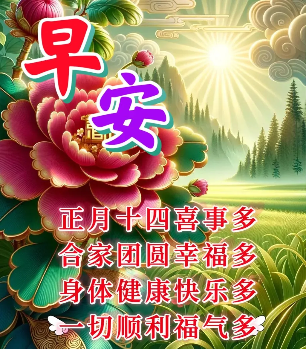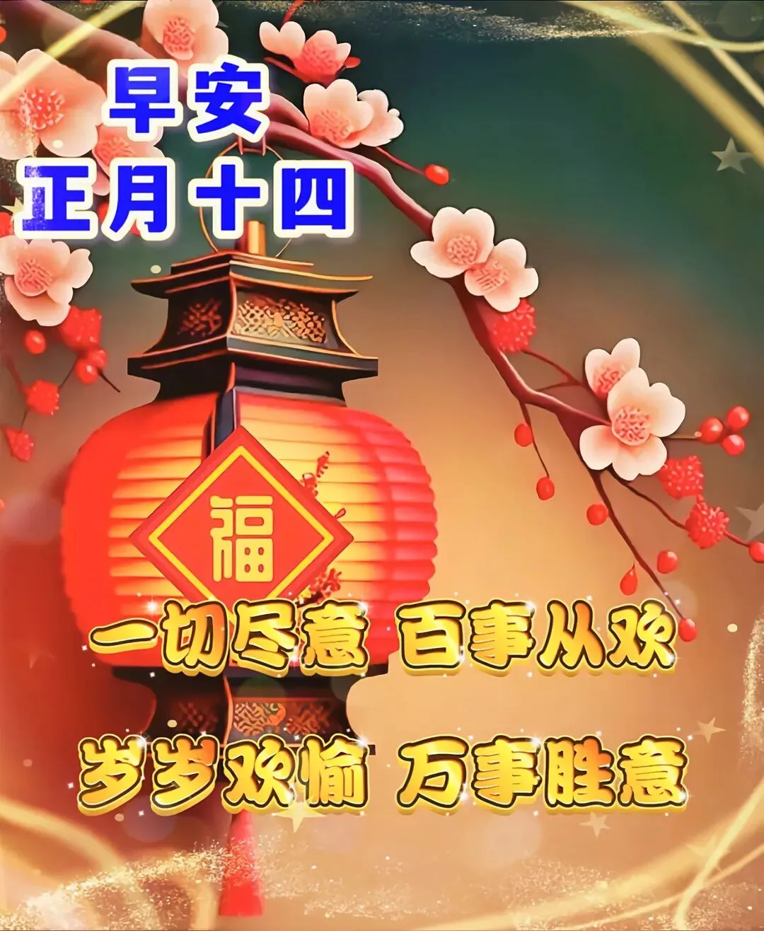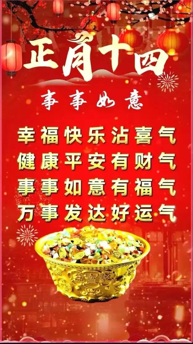🧧📱🍀今天是正月十四,早上给亲友送上祝福,真诚祝福您:年年都吉利,金钱往外溢,梦里笑嘻嘻,事事都如意,天天好运气,每时每刻都开心如意,凡事皆顺利!💰🙌😄