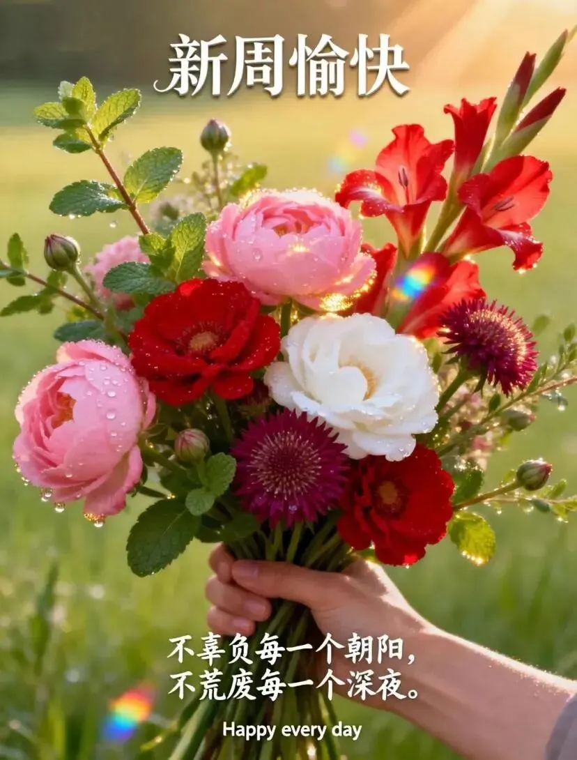 祝福友人,人生得意,意气风发,发愤图强,强身健体,体贴入微,威风四起,绮丽人生,生活美满,满面红光,光彩照人,人寿年丰。早安,愿你有个美好一天,早上好!