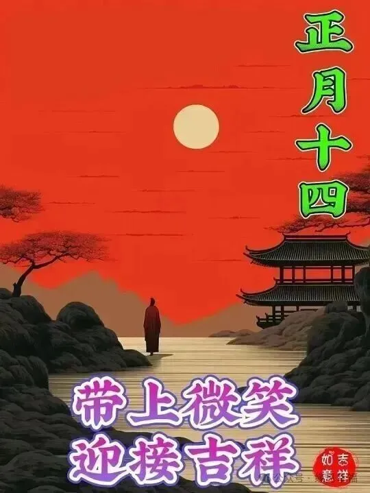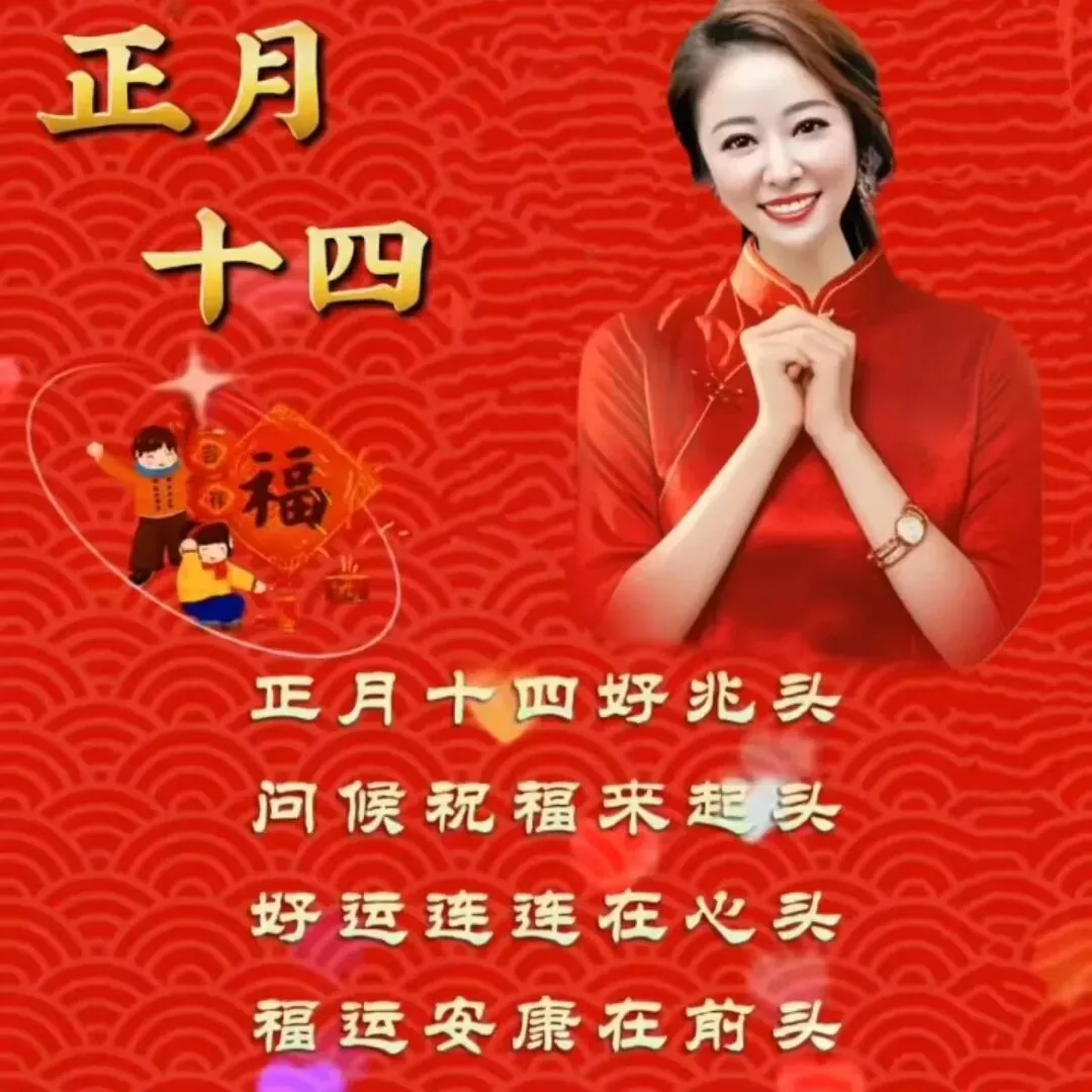 正月十四,吉祥日,贴心的问候,就两个字保重,真心的期盼,就三个字身体好,衷心的祝福,就四个字一生平安!