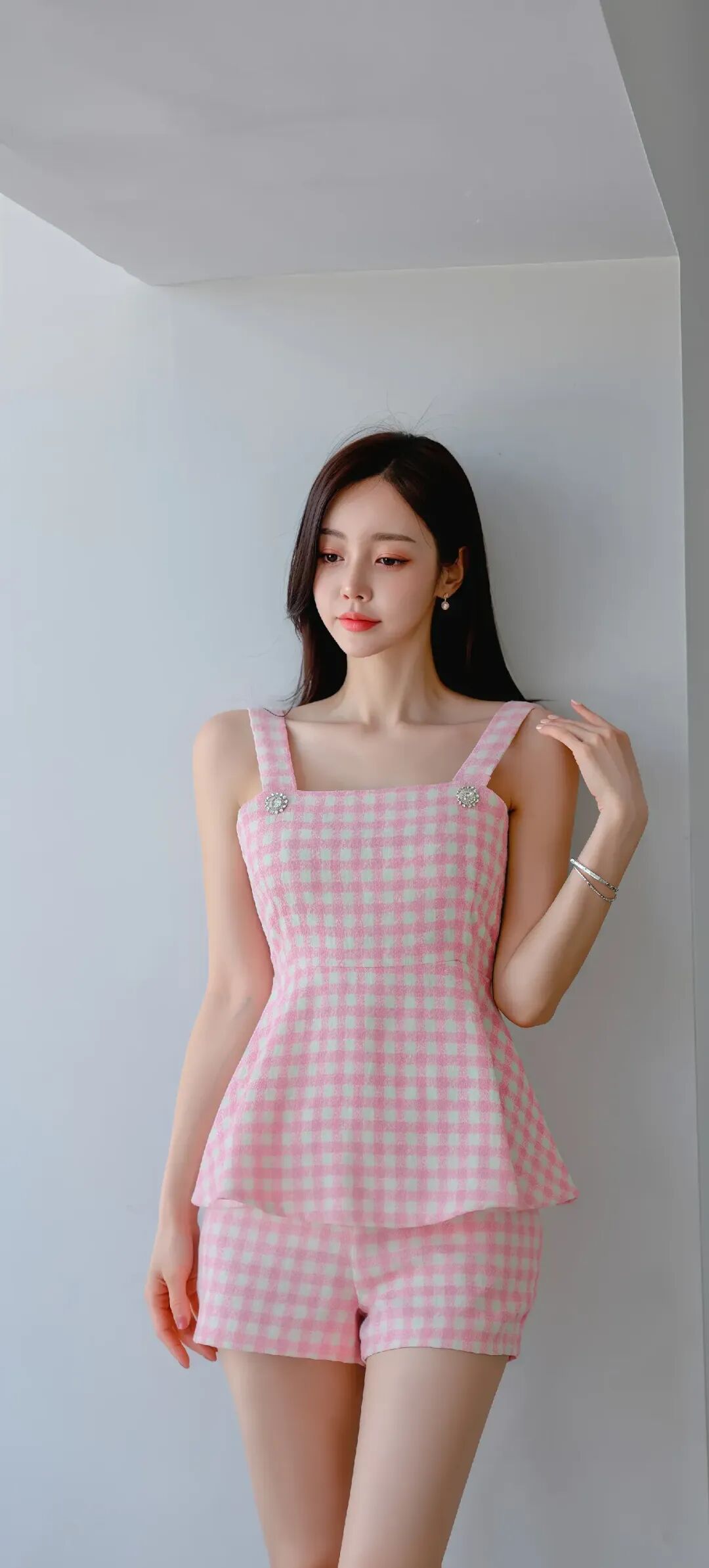 当前位置:首页>美女资讯>模特孙允珠少女心爆棚的粉色格纹套装,搭配白色高跟鞋,轻松打造夏日甜美风!