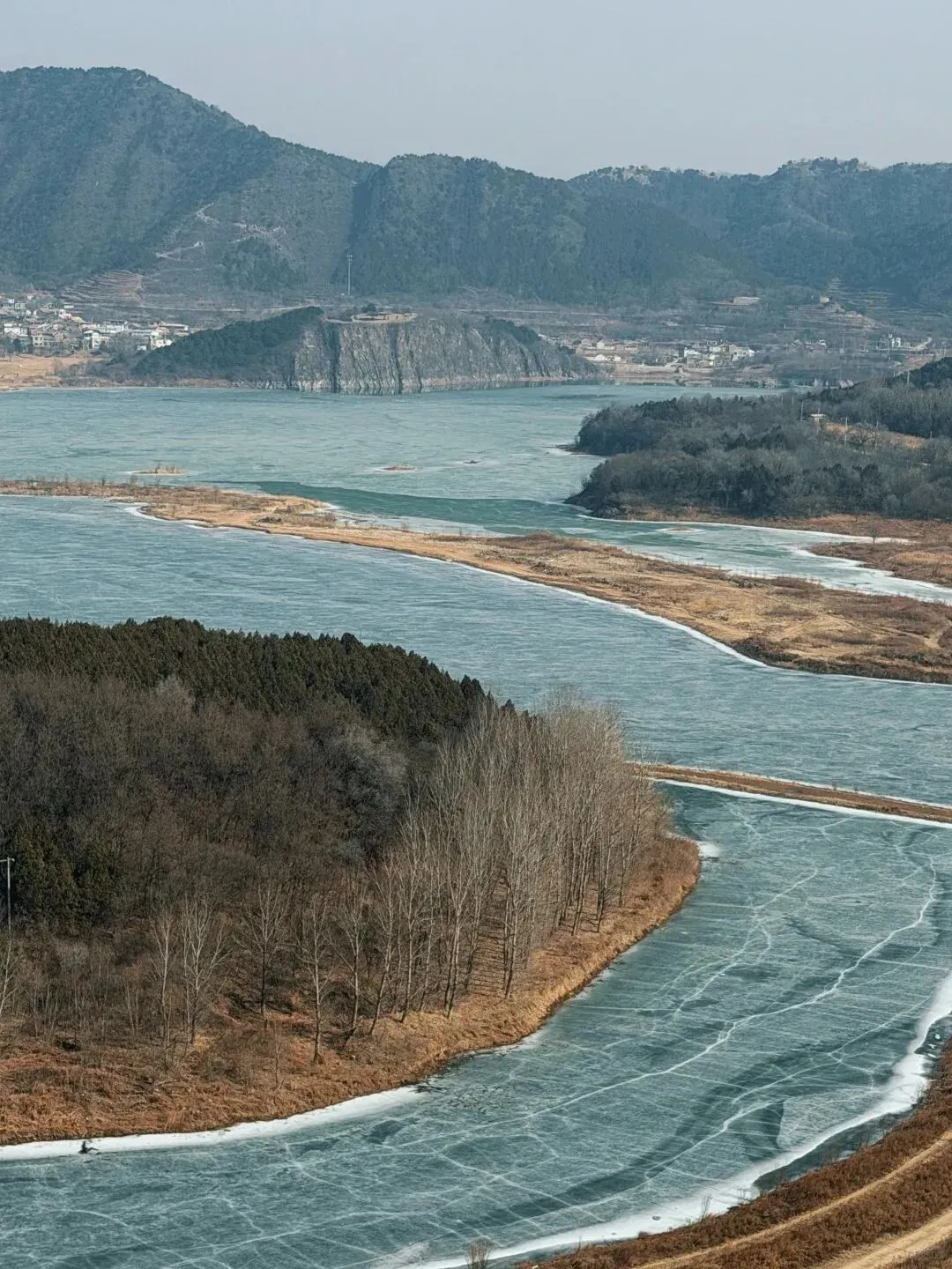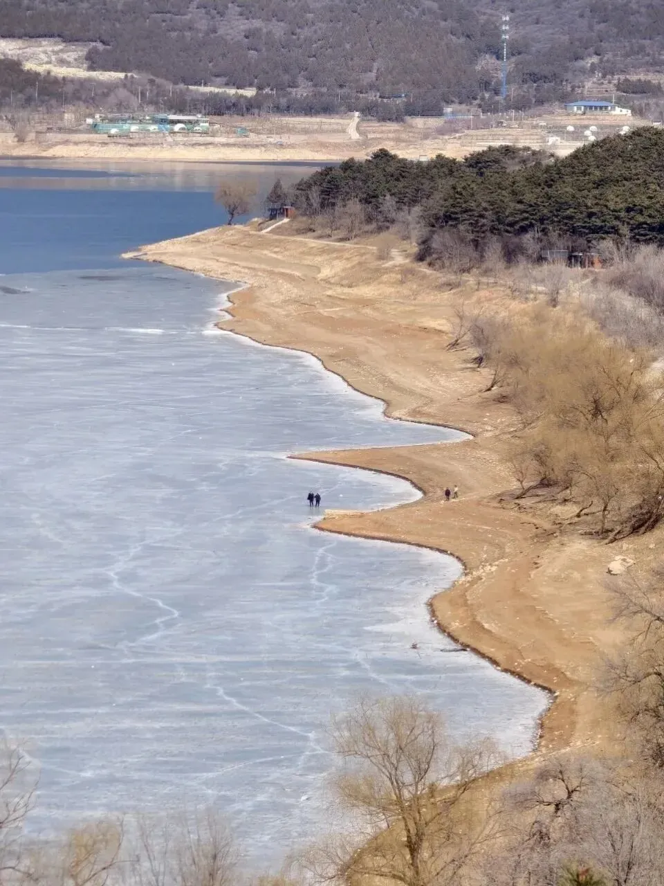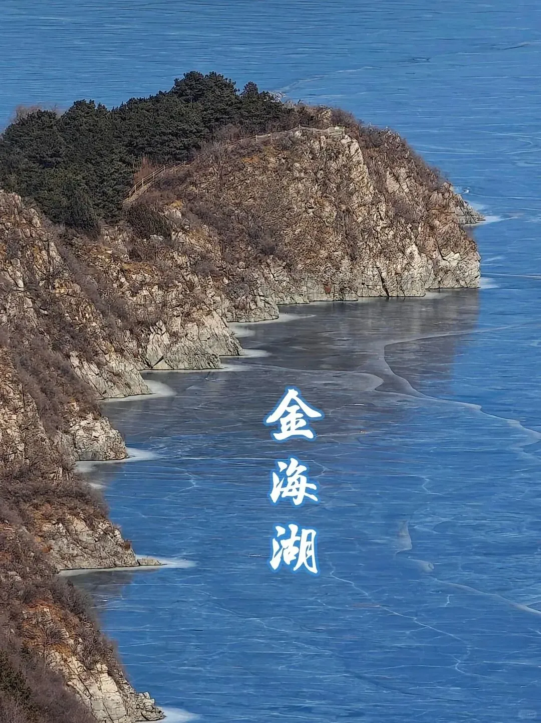 冬天的金海湖,湖面冻出龟裂的冰纹,阳光一照,碎银般闪着光,宛如一幅静谧的水墨画。