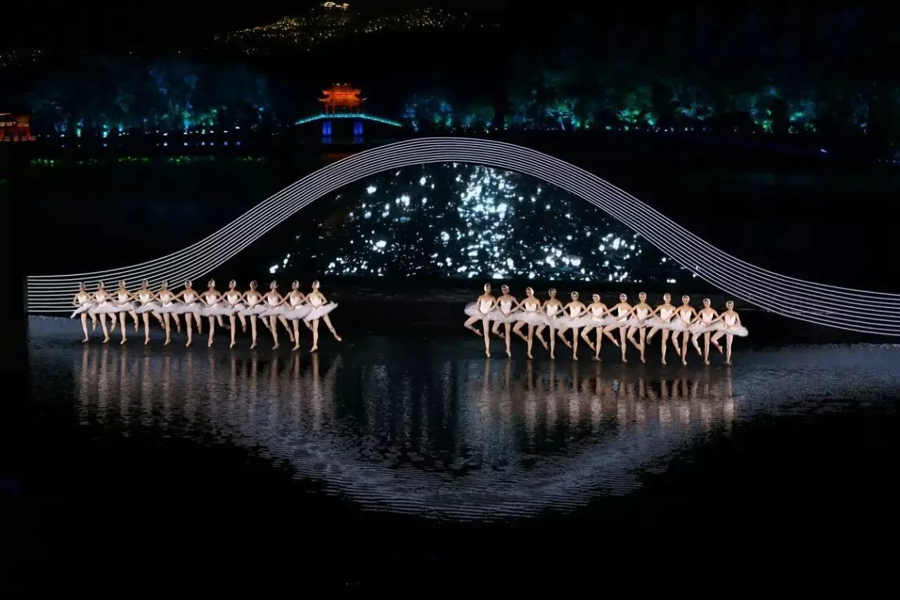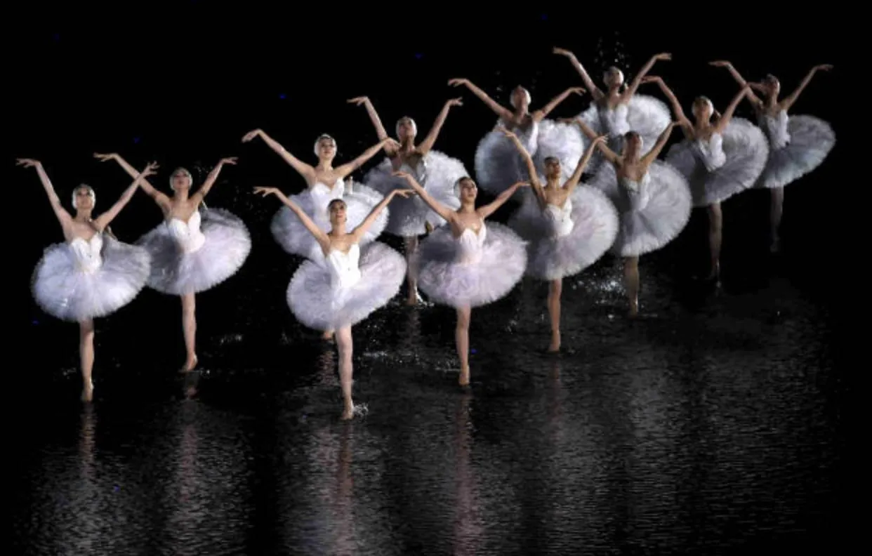 《天鹅湖》是世界上最著名的芭蕾舞剧之一。张艺谋导演说,恐怕连普京都没有见过在水上跳的芭蕾舞。