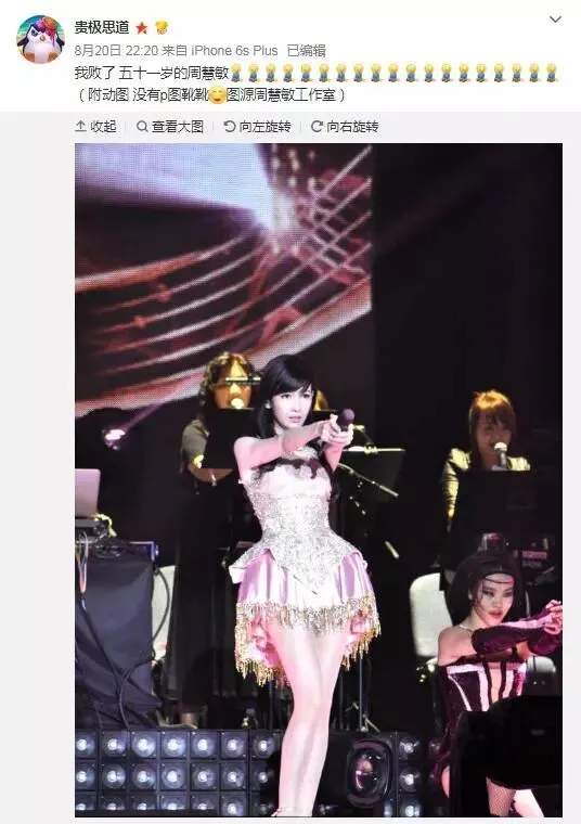 有人翻出了视觉中国的未修图片,说周慧敏的图是修过的,在化妆和灯光加持下才显得很年轻。