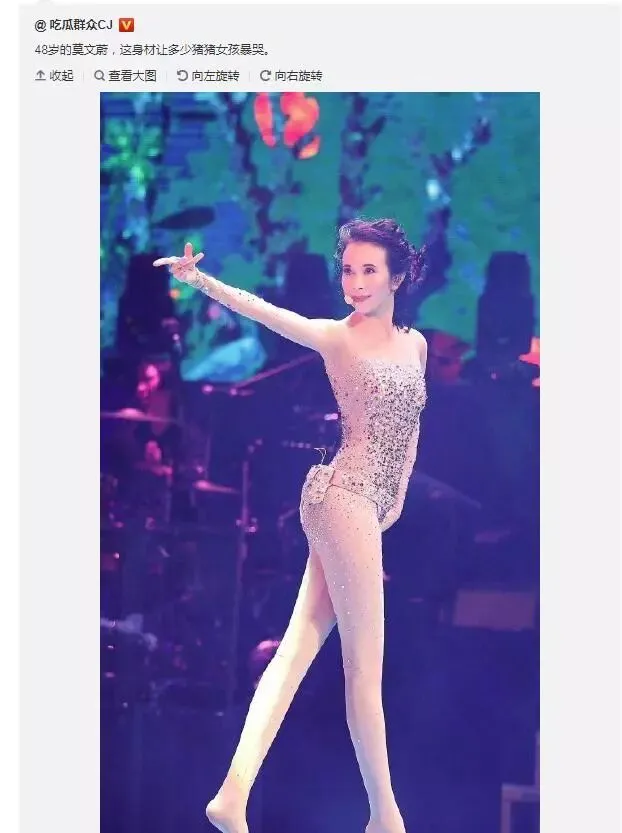 让人不得不服的还有48岁的莫文蔚,这是她最近在沈阳开演唱会的照片。
