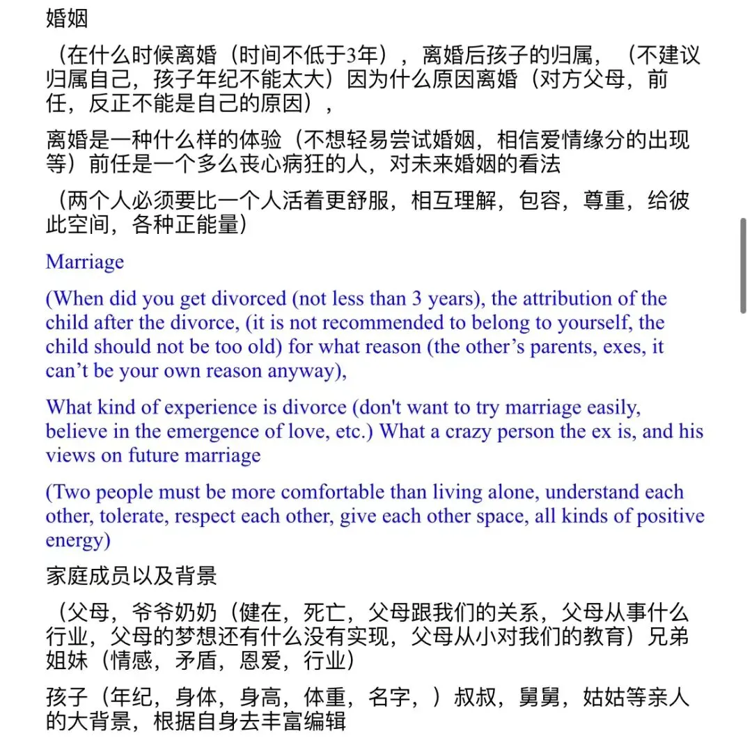 诈骗文档显示,诈骗团伙的目标群体偏向中老年男性。诈骗人员会把自己塑造成特定的完美女性形象,除了年龄合适、形象好、气质佳,性格上还得积极阳光。比如,尽管是离异状态,但在婚恋观上,要充满正能量——文档里明确“两个人要相互理解、包容、尊重,给彼此空间”。