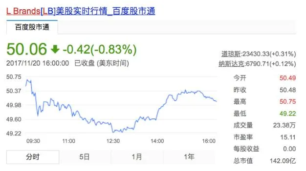 从此次维密种种向中国示好的行为不难看出,与其他的国外品牌瞄向中国市场时如出一辙。实际上,根据维密母公司L Brands公布的2017年第三季度财报显示,维密今年前三季度销售额为:38.4亿美元,同比下降11%;而从今年初至今母公司股价累计下跌23.9%,市值蒸发了34亿美元左右。
