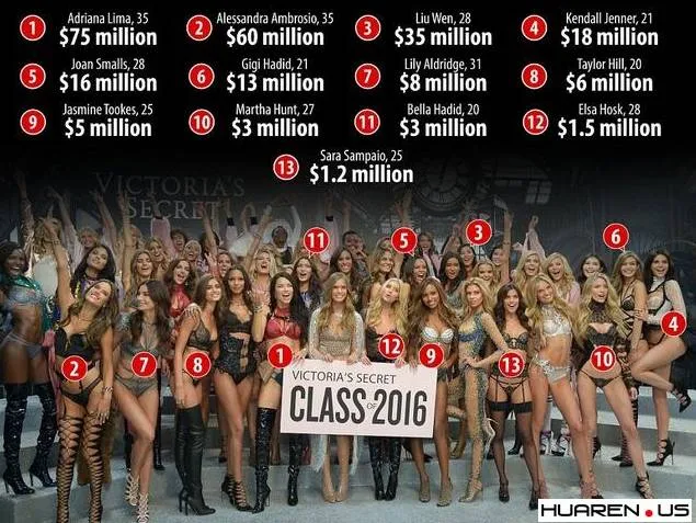 不过,好在模特们在成为维密天使后身价会大涨,2014年福布斯最赚钱的模特财富榜上,21位上榜模特只有5位没走过维密秀或为维密拍广告