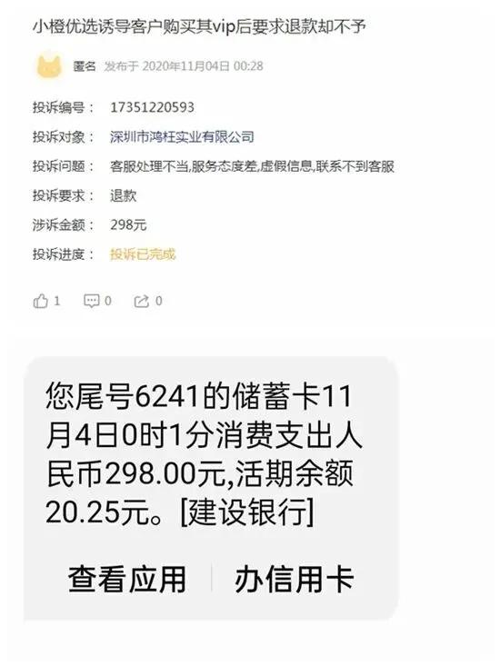 在黑猫投诉等平台,有网友反映,在小橙优选、喵享借、借款喵等平台上,注册后诱导用户购买VIP服务,但扣除几百元的VIP费用后,借贷也迟迟难下发。