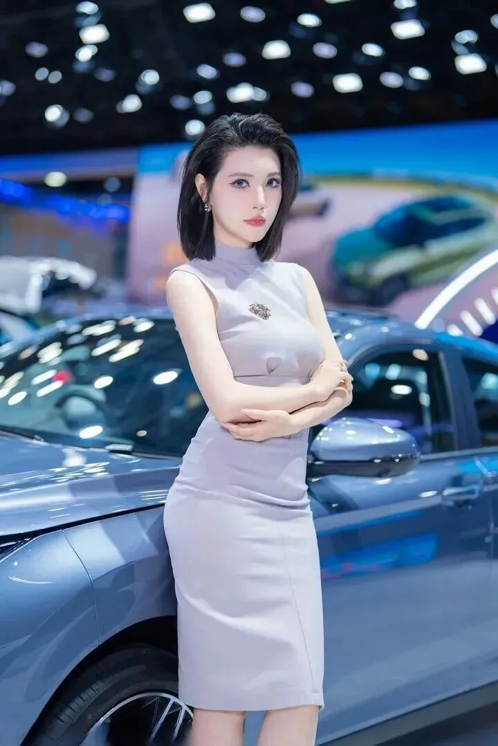 谁说车.展一定要.穿得.很成.熟?这.套浅.灰色.套装就特.别减.龄。高.腰设计.特别显腿.长,侧.身靠.车的姿势显.得特别.甜美。就.像邻居.家温柔.的大姐.姐,让人.忍不住想亲.近。日.常上班.这样穿,同.事肯定.追着你.要链.接。